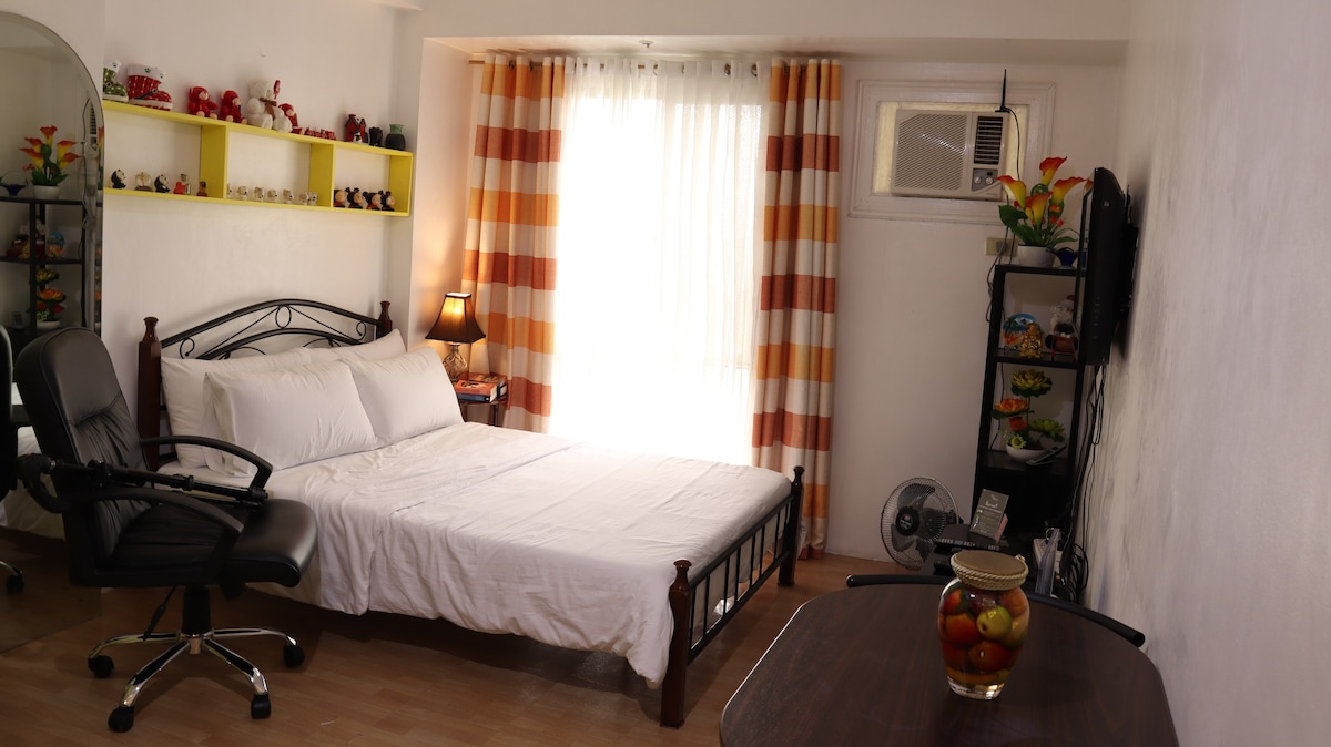 An bhfuil tú ag lorg áit le fanacht? Gearrthéarmach nó fadtéarmach? Tá aonad atá feistithe go hiomlán agus teolaí á óstáil agam ag Áiteanna Cónaithe Allamuigh in Sucat, Cathair Paranaque taobh thiar de SM Sucat. Níl sé ach 10 nóiméad ón aerfort agus in aice le SM Mall na hÁise. Siúlóid 5 -10 nóiméad go Stáisiún LRT Sucat. Is féidir leis an aonad freastal ar suas le 3 dhuine, agus is féidir leat taitneamh a bhaint as saoráidí éagsúla amhail linn snámha, cúirt chispheile, cúirt badmantan, agus nasc WI - FI.