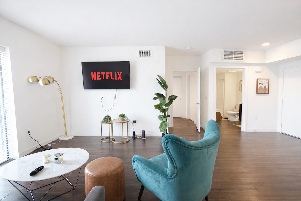 Fáilte chuig The Echo, do thearmann príobháideach féin i Echo Park. Bain sult as fanacht teolaí compordach inár svuít 1 seomra leapa, ina bhfuil leaba phluise ar mhéid na banríona le haghaidh oíche iontach codlata. Bain leas as ár bpáirceáil saor in aisce agus rochtain éasca ar shiopaí caife agus ar bhialanna in aice láimhe. Ina theannta sin, faigh blaiseadh de ghrá LA don daorchluiche le siúlóid 20 nóiméad go dtí Dodger Stadium. Cuimsíonn an áit suí ar leith leaba thoilg a athraíonn go dtí an 2ú seomra leapa. Déan áirithint anois le haghaidh fanacht áisiúil agus taitneamhach in Echo Park.