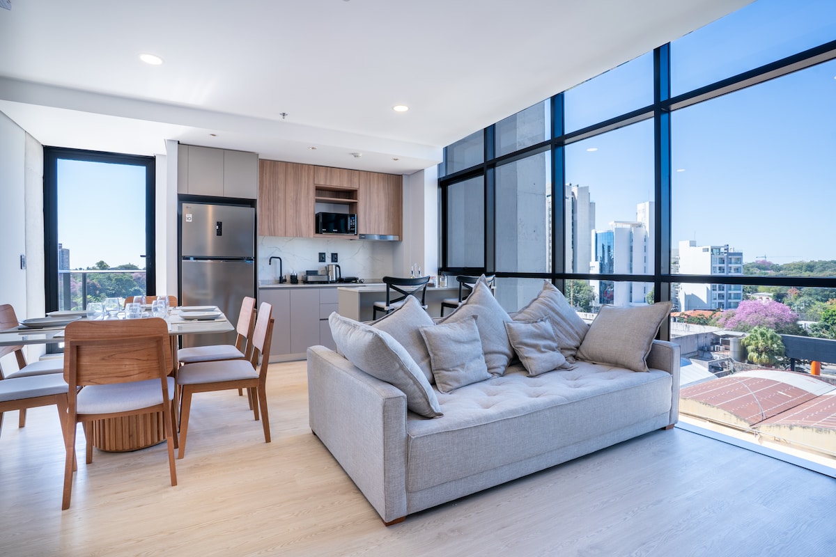 Fáilte chuig do thearmann sómasach in Asunción. Tá an t - árasán nua - aimseartha seo suite i gceann de na ceantair is mó ráchairt, in aice le Paseo La Galería agus Shopping del Sol, i gcroílár lárionad corparáideach bríomhar na cathrach. Cibé acu an bhfuil tú ag taisteal le haghaidh gnó nó fóillíochta, cuireann an spás seo an meascán foirfe de chompord, áisiúlacht agus stíl ar fáil.