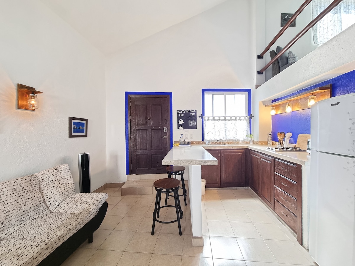 ✨ Spacious second-level apartment (220 sq ft) set in a lush tropical garden with over 40 fruit trees! Ideally located in the heart of downtown Cabo! Shops, restaurants and nightlife are all nearby! 5-min. walk to the marina and 15 min. walk to the beach 🏝️ ✅ Memory-foam mattress and blackout curtains for great sleep ✅ FREE private parking ✅ Private bathroom with amenities ✅ Private kitchen with appliances ✅ Complimentary coffee & tea ✅ TV featuring Netflix & YouTube ✅ In room safe