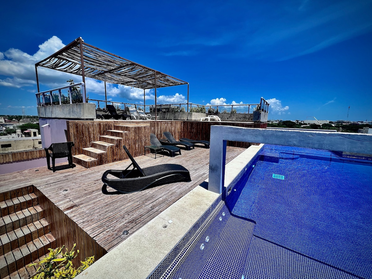 Árasán nua - aimseartha do dhaoine fásta amháin i gcomharsanacht chiúin díreach nóiméad ó lár na cathrach. Is breá le haíonna an suíomh síochánta agus filleann siad go minic don linn snámha ar an díon, don áit bheárbaiciú, agus don teachíocht laethúil. Déan cúrsáil ar an gcósta ar rothair saor in aisce nó déan iniúchadh ar shiopaí agus ar chaiféanna in aice láimhe. ✔ Linn Snámha ar an Díon Wi ✔ - Fi Starlink Rothair ✔ Saor in Aisce ✔ Cistin Iomlán ✔ Slándáil Oícheanta ➕ 7 - Aon bhloc amháin ar shiúl Bónas: Lascaine 10% ar thumadóireacht scúba le Scuba Life Cozumel den scoth. Aois 12+ amháin.