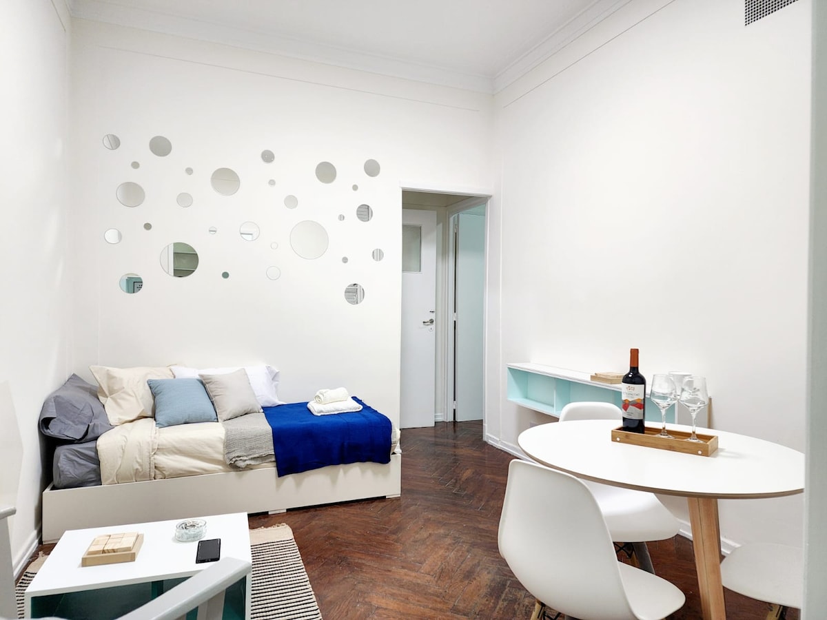 Stiúideo deartha álainn atá athchúrsáilte go hiomlán agus nua - fheistithe le radharc uathúil ar shean - cruinneacháin na cathrach. Lonnaithe i sean - lár Buenos Aires, ceantar ina bhfuil oidhreacht iontach stairiúil, chultúrtha, ailtireachta agus díreach 300 méadar ón Obelisk, tá an lóistín oiriúnach dóibh siúd atá ag taisteal le haghaidh turasóireachta nó oibre. A bheith suite go lárnach agus nasc a bheith agat leis an bpríomh - mhodh iompair, tá sé oiriúnach chun dul ar camchuairt ar na príomhnithe is díol spéise do thurasóirí sa chathair.