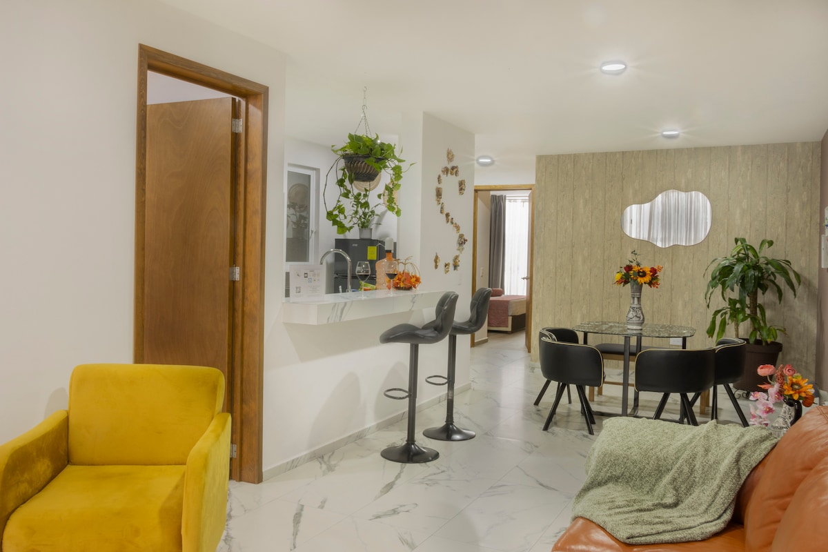 Bíodh eispéireas uathúil agat ag an teach nua - aimseartha seo atá suite go lárnach in San Pedro Cholula. Díreach nóiméad ó phirimid íocónach Cholula agus na príomhchearnóga siopadóireachta, bain sult as spás ciúin, atá lán de stíl agus de chompord, foirfe chun do scíth a ligean agus an chathair a iniúchadh.