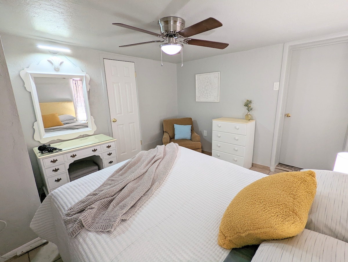 Ceangailte le gach svuít nua de chuid Luxury Guest in Sierra Vista AZ. Bealach isteach príobháideach agus áiteanna cónaithe príobháideacha ina bhfuil cistin iomlán ina bhfuil an mhias/na hearraí cócaireachta go léir a theastaíonn. Tá smacht agat ar do A/C agus ar do theas sa seomra stiúideo. Áirítear leis seo do sheomra folctha príobháideach féin, leaba rímhéide, seomra suí/bia, agus do thriomadóir níocháin féin. Lonnaithe i gcomharsanacht chiúin i lár Sierra Vista, achar gearr ó chosáin éagsúla, siúlóidí, faire ar éin, agus Ft. Huachuca.