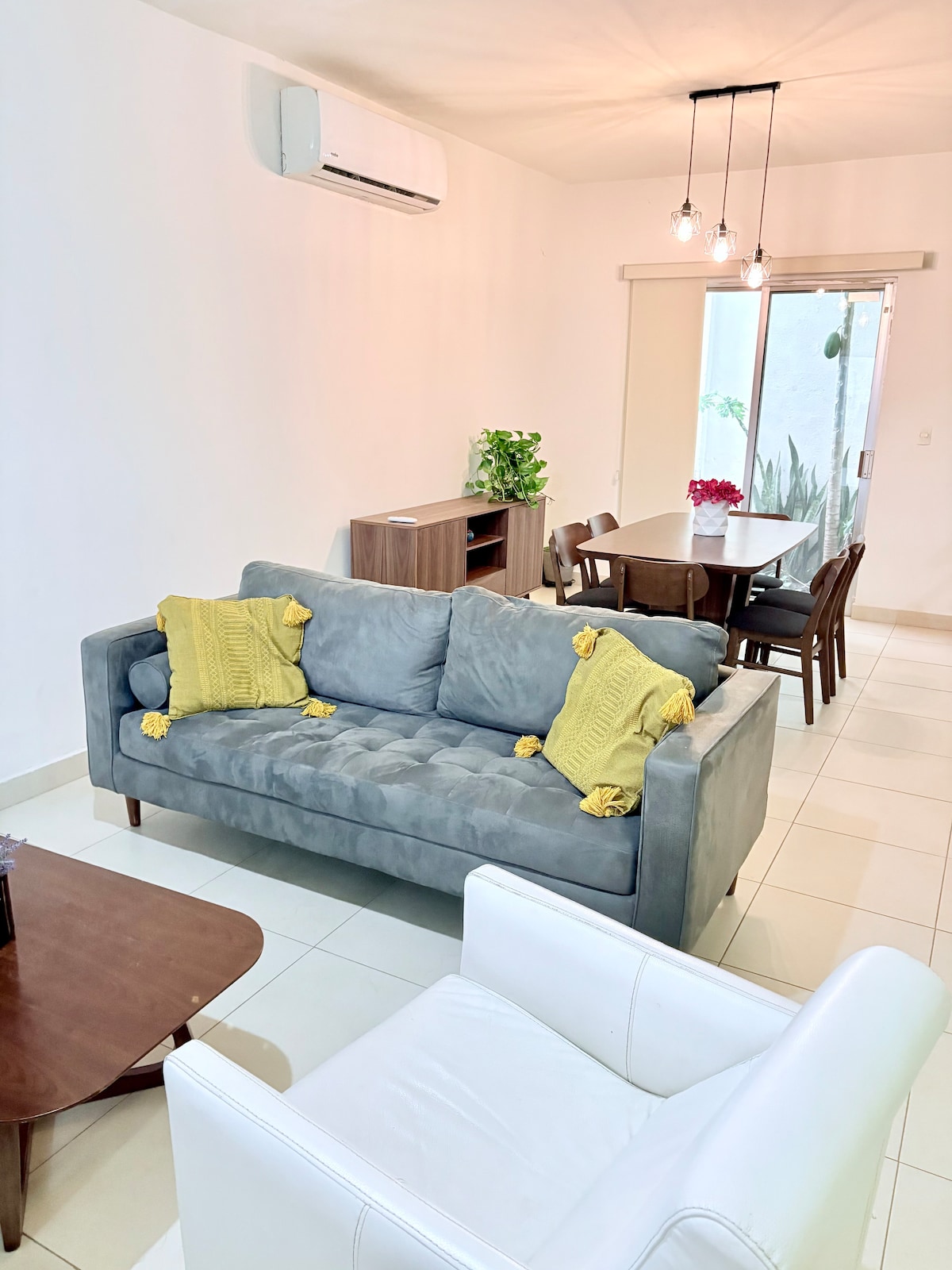 Este elegante y moderno alojamiento es ideal para viajes cortos o de larga estancia ubicado en una residencia protegida 24 Hrs. por caseta de seguridad sin riesgos. Ubicación muy céntrica , lugar muy lindo y tranquilo que te permite relajarte y descansar en paz, recién construido con entrada totalmente independiente, espacios muy amplios, terraza, juegos y mesa de jardín, sin problemas de agua, hermosas vistas hacia la sierra, ideal para negocios, conciertos o viajes en familia.