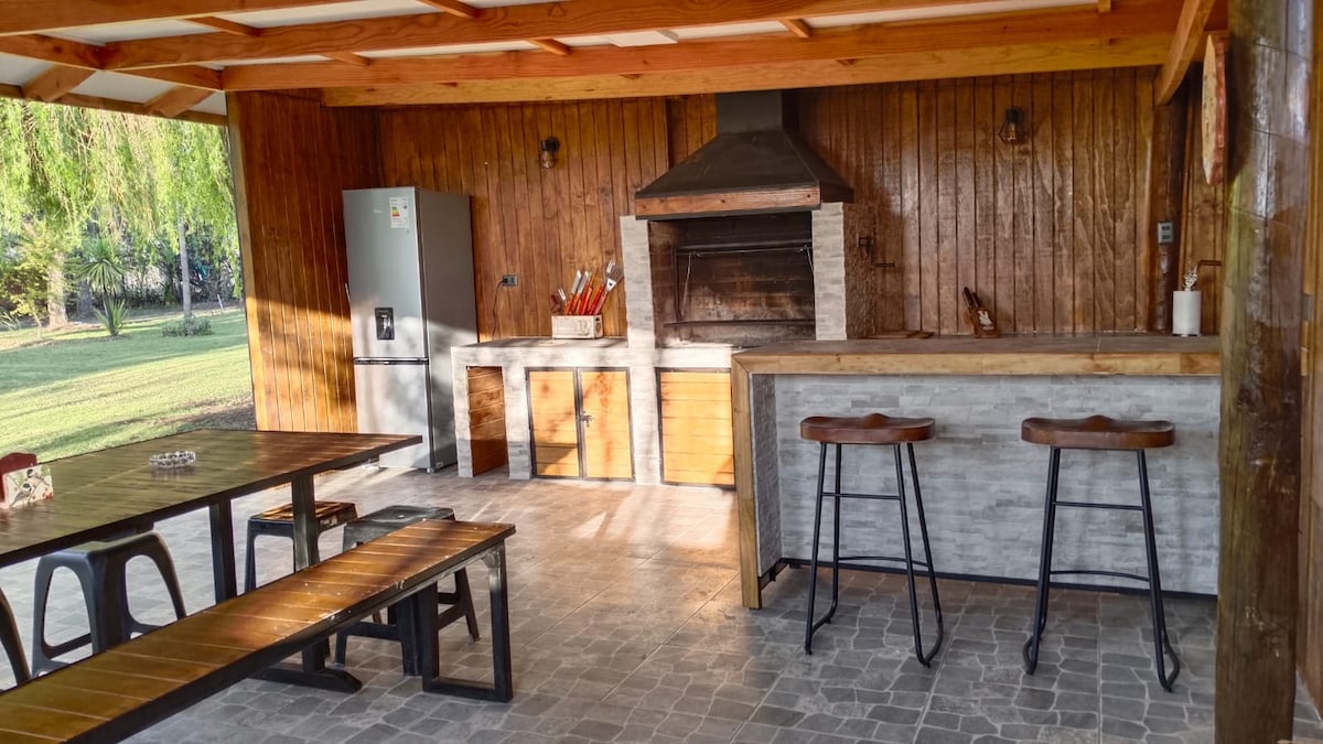 Tearmann príobháideach eisiach a bhfuil radharc iontach ar Shléibhte na nAindéis uaidh. Suite in iomlán na ciúine agus an dúlra thart timpeall air, gan aon tithe in aice láimhe. Tá linn snámha agus tobán te ann (tobán te atá le húsáid go heisiach ag an gcábán), quincho mór agus spásanna lánfheistithe. Aerchóiriú, Wi-Fi san áireamh, is féidir leat cianobair a dhéanamh ón linn snámha. An-réidh d'Aosaigh Óga. Inbhuanaithe, compordach agus deartha chun scíth a ligean. 20 míle ó Enjoy Casino, 60 míle ó Portillo agus 1 uair an chloig ó Santiago.