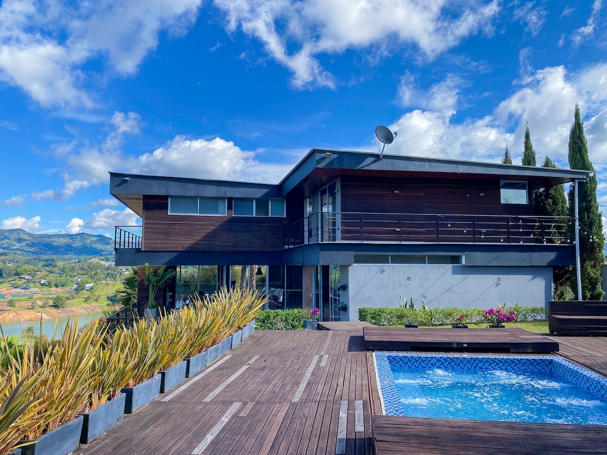 Welcome to your dream vacation home in Guatapé, Colombia with direct access to the lake, where you can swim, fish, or relax on the shore! This spacious and cozy lake house offers a stunning view of the iconic La Piedra del Peñol, a giant rock formation that rises above the landscape. The house has three bedrooms, each with 2 comfortable bed and a large window overlooking the lake, their own bathroom , the main bedroom with hot tub. The house also has a deck and barbecue grill