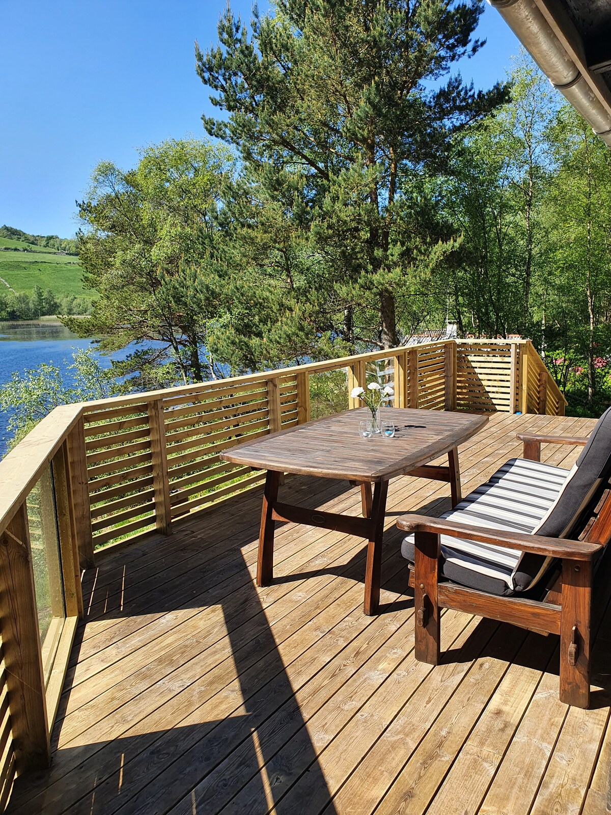 Teachín idilliúil cois locha, suite faoi scáth cosán siúil. Radharc álainn ar an bhfarraige. Bealach gearr go dtí an trá snámha agus an siopa. Foirfe do lánúineacha. In aice le lár chathair Stavanger. Nasc bus le bus díreach go dtí lár na cathrach in aice láimhe. Gníomhaíochtaí -Snámh -Iascaireacht - Siopadóireacht/saol na cathrach/cultúr/músaeim -Kongeparken -Páirceanna dreapadóireachta/páirceanna gníomhaíochta -Cosán siúlóide Leaba dhúbailte i seomra leapa 1 agus i seomra leapa 2. Leaba bhreise ar fáil d'aoi 5