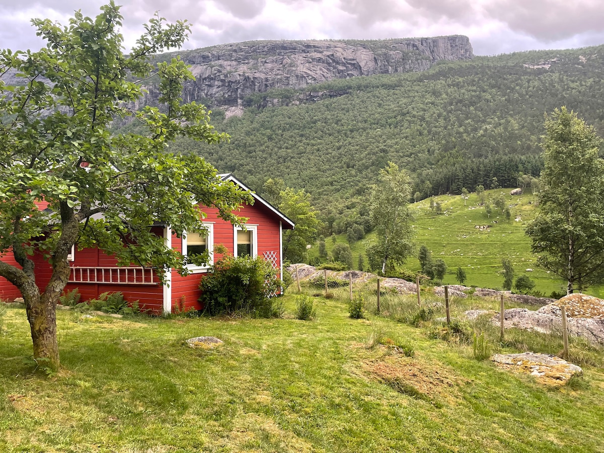Teachín teolaí i gcroílár Lysefjord - gar do Charraig Pulpit Faigh blaiseadh d'fhíor - atmaisféar cábáin na hIorua sa chábán gleoite compordach seo i lár cheantar iontach Lysefjord. Gan ach achar gearr go dtí an Charraig Pulpit íocónach, bunáit fhoirfe ónar féidir iniúchadh a dhéanamh ar a bhfuil le tairiscint i réigiún Ryfylke. Dúisigh le héin ag cíoradh agus radhairc ar shléibhte maorga. Tá cosáin fánaíochta, dreapadóireacht, iascaireacht agus turais bháid ar fáil sa fjord sa cheantar. Atmaisféar teolaí, atá foirfe d'oícheanta teo an tsamhraidh agus do thráthnóna fuar an fhómhair araon.