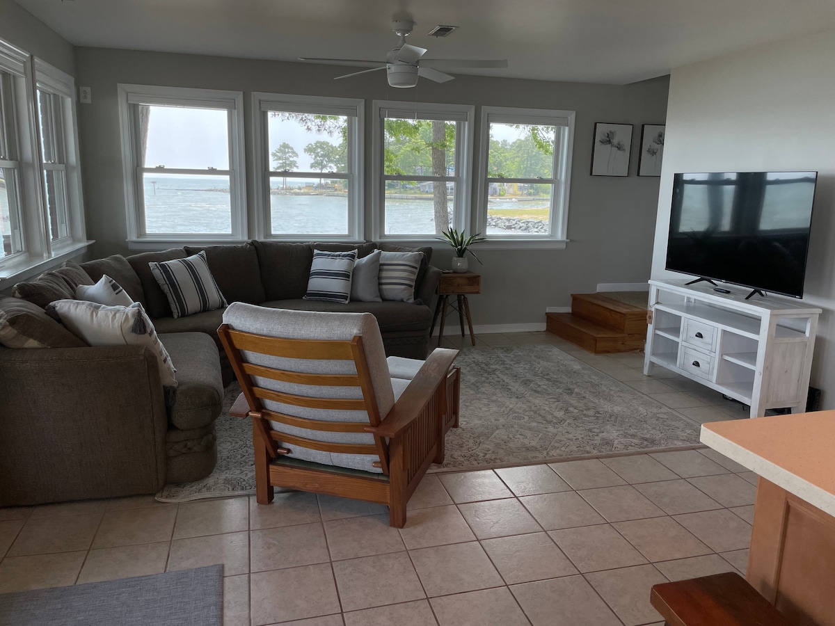 Radharcanna 180 milliún dollar i mbaile gleoite Reedville, VA. Ar shiúl ón torann go léir, ní bheidh tú ag iarraidh ár dteachín a fhágáil nuair a thiocfaidh tú anseo. Tá balcóin phríobháideach ag seomra leapa thuas staighre le radhairc iontacha. Radhairc ar an mbá ó bheagnach gach fuinneog sa teach. Saoire fhoirfe do lánúineacha nó don teaghlach ar fad. 60 orlach Teilifís Chliste! Tar chun roinnt cuimhní cinn a thógáil!