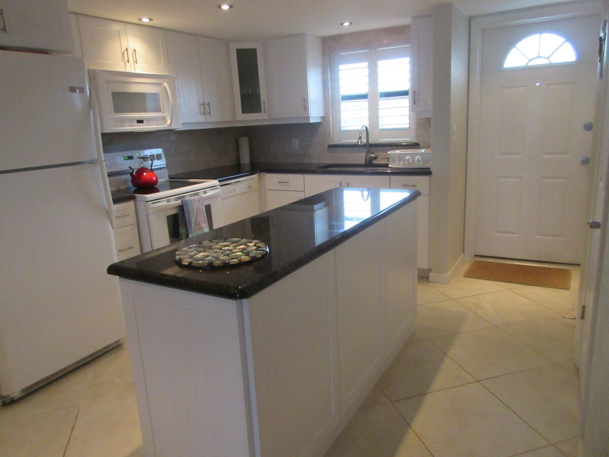 Árasán atá nuashonraithe go hálainn ag breathnú amach ar chlós trópaiceach. Díreach céimeanna amach ó Flagler Ave., i bhfolach taobh istigh den chlós ar an dara hurlár tá an t - árasán nua - athchóirithe seo atá líonta le feistis trá agus saothar ealaíne saincheaptha. Tá an teach suite in dhá chrios ar leith, gach ceann acu ina bhfuil seomra leapa agus seomra folctha. I measc na bpríomhsheomraí leapa tá leaba ollmhór ar mhéid an Rí. Drisiúr mór, HDTV 50" 4K agus seomra folctha príobháideach iomlán ceangailte. Radharc BALCÓIN, le suíochán grá ag breathnú amach ar an gclós álainn thíos.