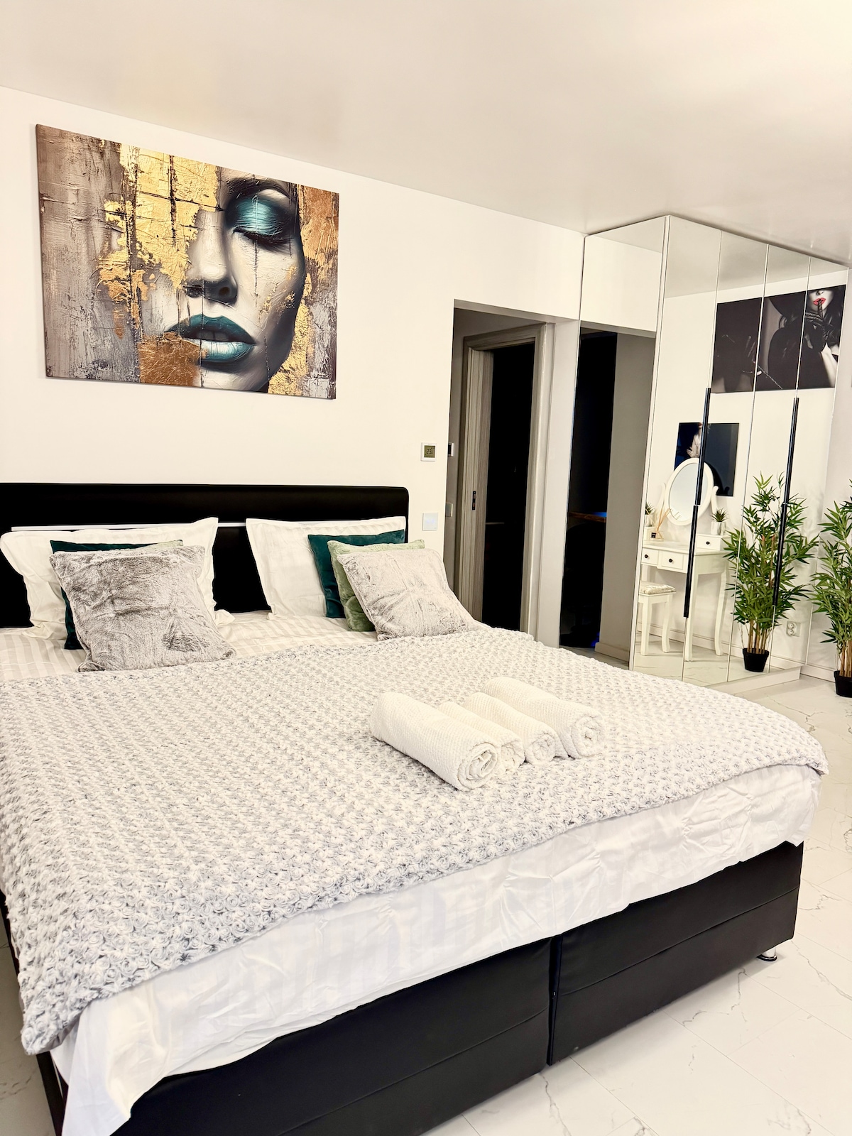Áit Chónaithe Aerfort Iris: só agus compord díreach trasna ón aerfort. Árasán galánta ina bhfuil leaba rímhéide, meaisín espresso gairmiúil, Teilifís Chliste, Wi - Fi ardluais, spás oibre, áit itheacháin, téamh urláir, féinseiceáil isteach agus rogha páirceála. Tá gach orlach deartha go tuisceanach do do chompord. Foirfe do thurais ghnó agus sosanna cathrach, díreach céimeanna ón gcríochfort nua.