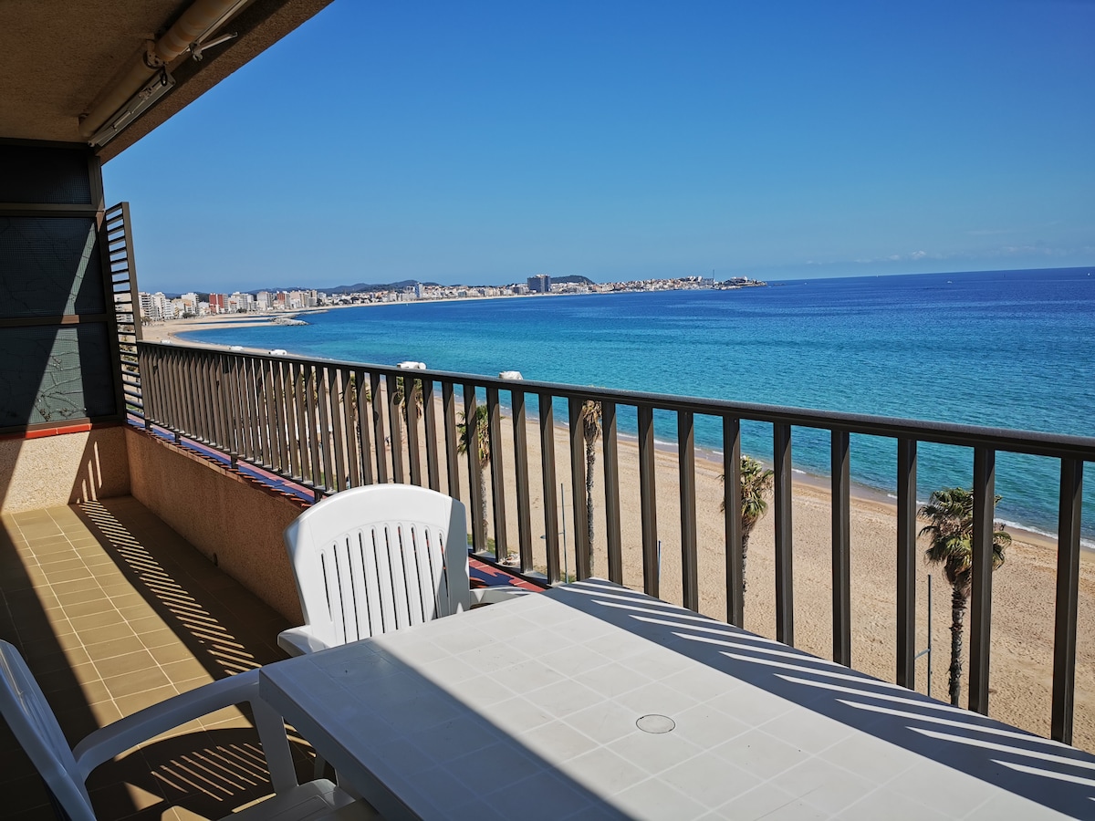 Apartament de 55 m², situat a primera línia de mar a Sant Antoni de Calonge, a la exclusiva zona de Torre Valentina. La terrassa ofereix impressionants vistes panoràmiques a la badia de Palamós. Disposa de sala d’estar-menjador, 2 dormitoris (un amb llit doble, l’altre amb 2 llits individuals), cuina totalment equipada i bany ampli. Ofereix WiFi gratuït, aire condicionat i aparcament privat a la finca. De maig a setembre, les reserves són de dissabte a dissabte. Taxa turística no inclosa.