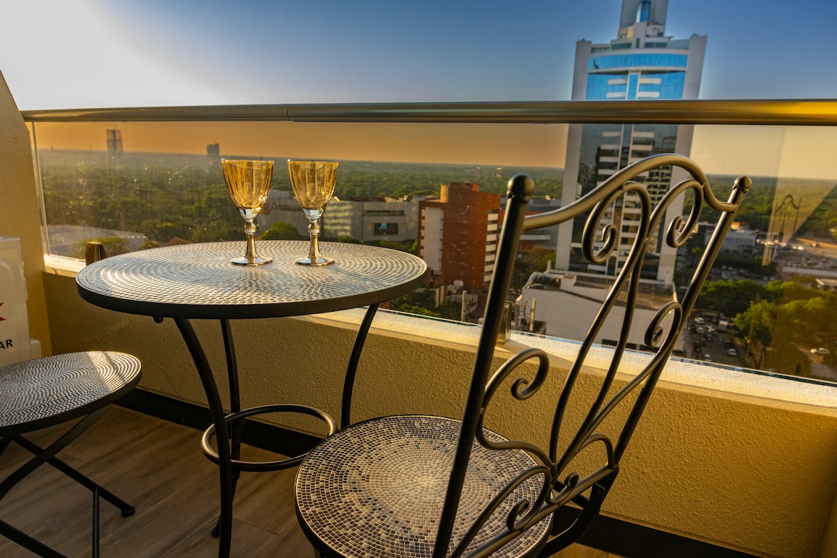Disfruta tu estadía en el airbnb mas alto de Santa Cruz, y en el mejor edificio de la ciudad, en las instalaciones podrás disfrutar de Piscina, Sauna a Vapor, vistas espectaculares desde el piso 26 hacia el hermoso edificio Manzana 40, la naturaleza del cordón ecológico y el urubo. A unos pasos de supermercado, restaurantes, mall, centro empresarial, bancos, spa. En el mismo edificio Estan los restaurantes más altos y bellos de santa Cruz , Cielo skay bar y Jardin de Asia.