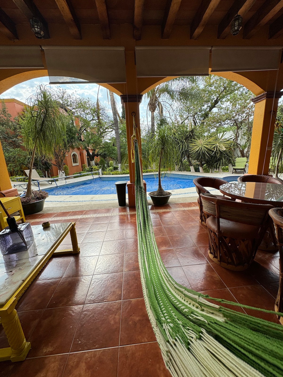 Is teach traidisiúnta de chineál hacienda é ár dteach. Níl ach a n - iontrálacha ag na seomraí leapa d'aíonna tríd an bpaitió lasmuigh. Tá an linn snámha phríobháideach théite ag fanacht le haghaidh snámh suaimhneach tar éis lá iomlán ag breathnú thart ar fhothracha nó ar chamchuairt ar an bpueblos in aice láimhe! Is pueblo beag síochánta é Lachigolo, thart ar 15 nóiméad sa charr ó Oaxaca feadh an Pan American Highway, agus thart ar 5 nóiméad tar éis El Tule. Mar gheall ar an suíomh tá sé ina bhunáit mhaith do thurais lae chuig áiteanna amhail Hierve al Agua, Teotitlan, agus Mitla.