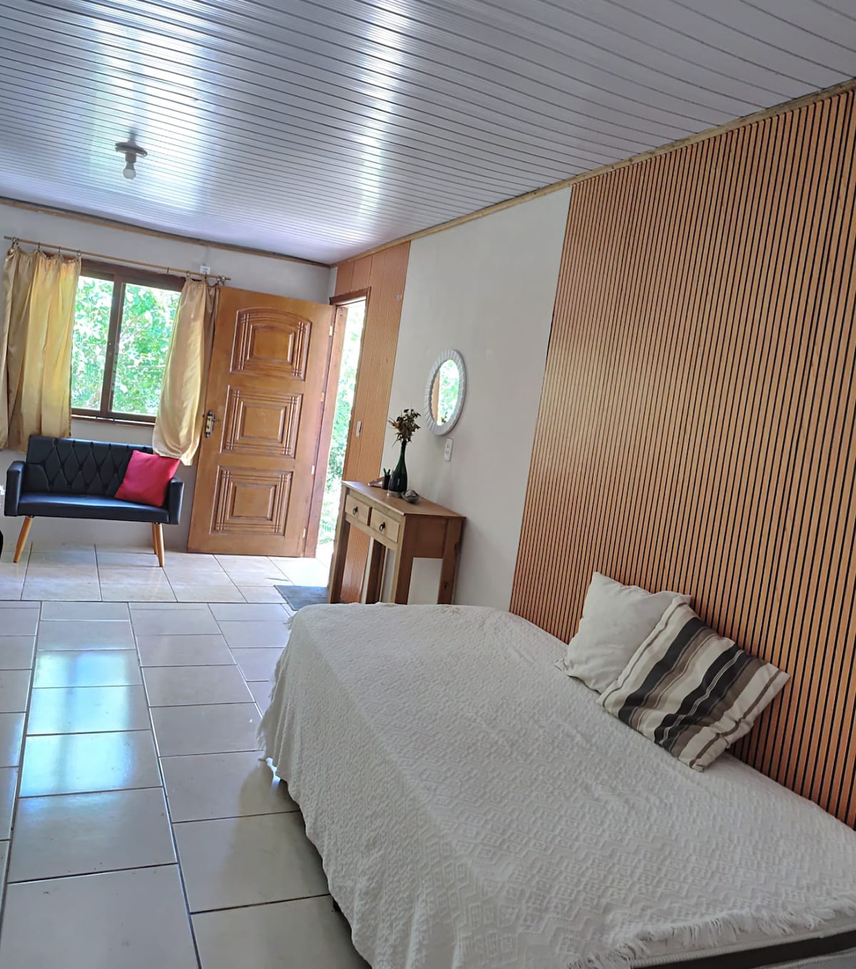 Réimse teaghlaigh ina bhfuil teach aíochta neamhspleách dea - fheistithe, teallach ina bhfuil adhmad dóiteáin ar fáil agus linn snámha eisiach d'aíonna. Lonnaithe faoin tuath in Nova Petrópolis, gan ach 2 km ar urlár an bhóthair buailte agus 30 km ó Centro de Gramado. Tá an teach lán le leapacha thar a bheith teolaí, 200 mega Wi - Fi, teilifíseán cliste, cistin iomlán, beárbaiciú agus eile. Tá an fheirm orgánach agus cuirimid ár dtorthaí agus ár nglasraí ar fáil. Tar agus bain sult as Sítio Oikos le do theaghlach agus le do chairde.