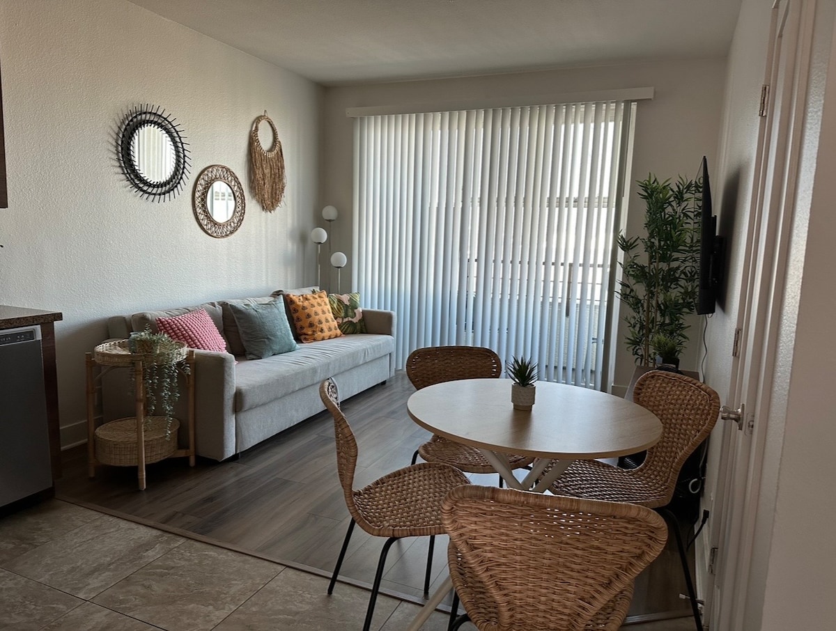 Díreach céimeanna ó chlárchosán mór le rá na Veinéise, comhcheanglaíonn an t - árasán gleoite seo compord nua - aimseartha le stíl chlasaiceach California. Bain sult as vibe na Veinéise díreach taobh amuigh de do dhoras — téigh ag spaisteoireacht go dtí an trá, déan iniúchadh ar shiopaí áitiúla, nó faigh caife ag caifé in aice láimhe. Tar éis lá faoin ngrian, lig do scíth ar do phaitió príobháideach agus lig don ghaoth aigéin an giúmar a shocrú. Cibé acu an bhfuil tú anseo le scíth a ligean nó le hiniúchadh a dhéanamh air, cuireann an tearmann teolaí seo gach rud a theastaíonn uait ar fáil le haghaidh fanacht dodhearmadta cois trá.