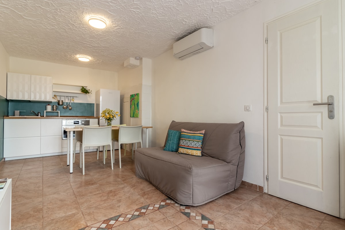 Calvi, árasán do 4 dhuine ag a bhfuil páirceáil, 200 m ón trá