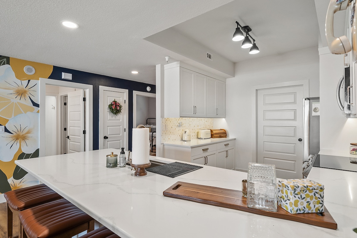 Enjoy views of both the Gulf and Bay from your private balcony. Relax in this beachside condo with a distant gulf view, a view of the bay and easy access to Navarre’s white sand. Perfect for couples or small families, the space comfortably sleeps 4 and can accommodate up to 5 with a sleeper sofa. Enjoy a king bedroom, hallway bunks for kids, and a short walk to the beach—without paying beachfront prices. Clean, comfortable, and designed for a stress-free getaway.