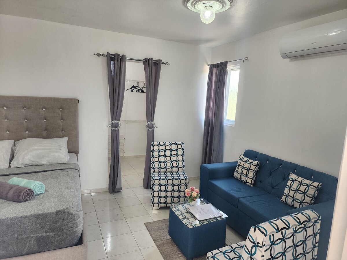 Fáilte chuig ár Seomra Beag Cozy! Spás athchóirithe nach bhfuil ach 25 nóiméad ar shiúl ó Aeropuerto International del Cibao, agus 5 nóiméad ar shiúl ón ollmhargadh, El Nacional. Tá an spás athchóirithe seo suite go háisiúil in aice le Avenida 27 de Febrero. Cuireann sé balcóin deas agus Breeze iontach ar fáil. 1 seomra leapa a thairiscint - le leaba bhanríona ar féidir léi codladh go compordach le 2 dhuine. Ar ndóigh, aerchóiriú.