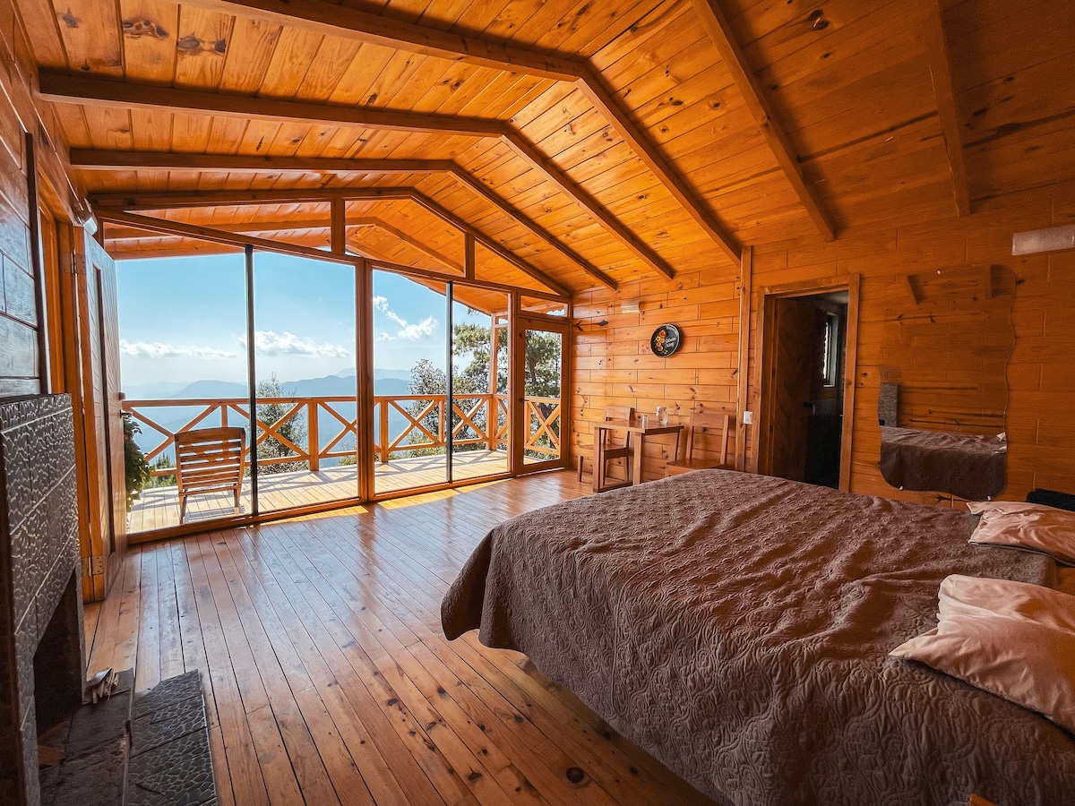 Cábán go hiomlán san fhoraois, timpeallaithe ag crainn, áit ar féidir leat a scíth a ligean agus do scíth a ligean ag baint taitnimh as an dúlra agus as canadh na n - éan. Ar na balcóiní is féidir leat taitneamh a bhaint as radhairc ar na sléibhte agus ar an bhforaois. Taobh amuigh tá spás do thine champála.
