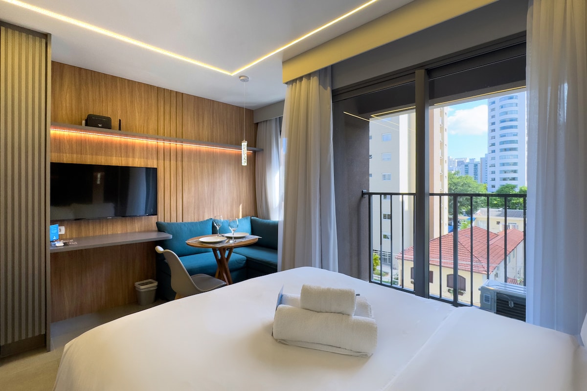 Studio sofisticado e moderno, na melhor localização do Itaim Bibi, em condomínio de luxo novíssimo e moderno próximo ao Parque Ibirapuera e Avenida Faria Lima. Ambiente projetado para ser sua casa em São Paulo. Os Hospedes tem acessos às áreas comuns do condomínio. - Lavanderia, piscina, academia completa, salão de jogos, share space com lounge, sala de reunião, share working, espaço de lazer e recepção 24 horas. - Ar condicionado split - wifi 300 mbps - cozinha completa - cama mesa e banho