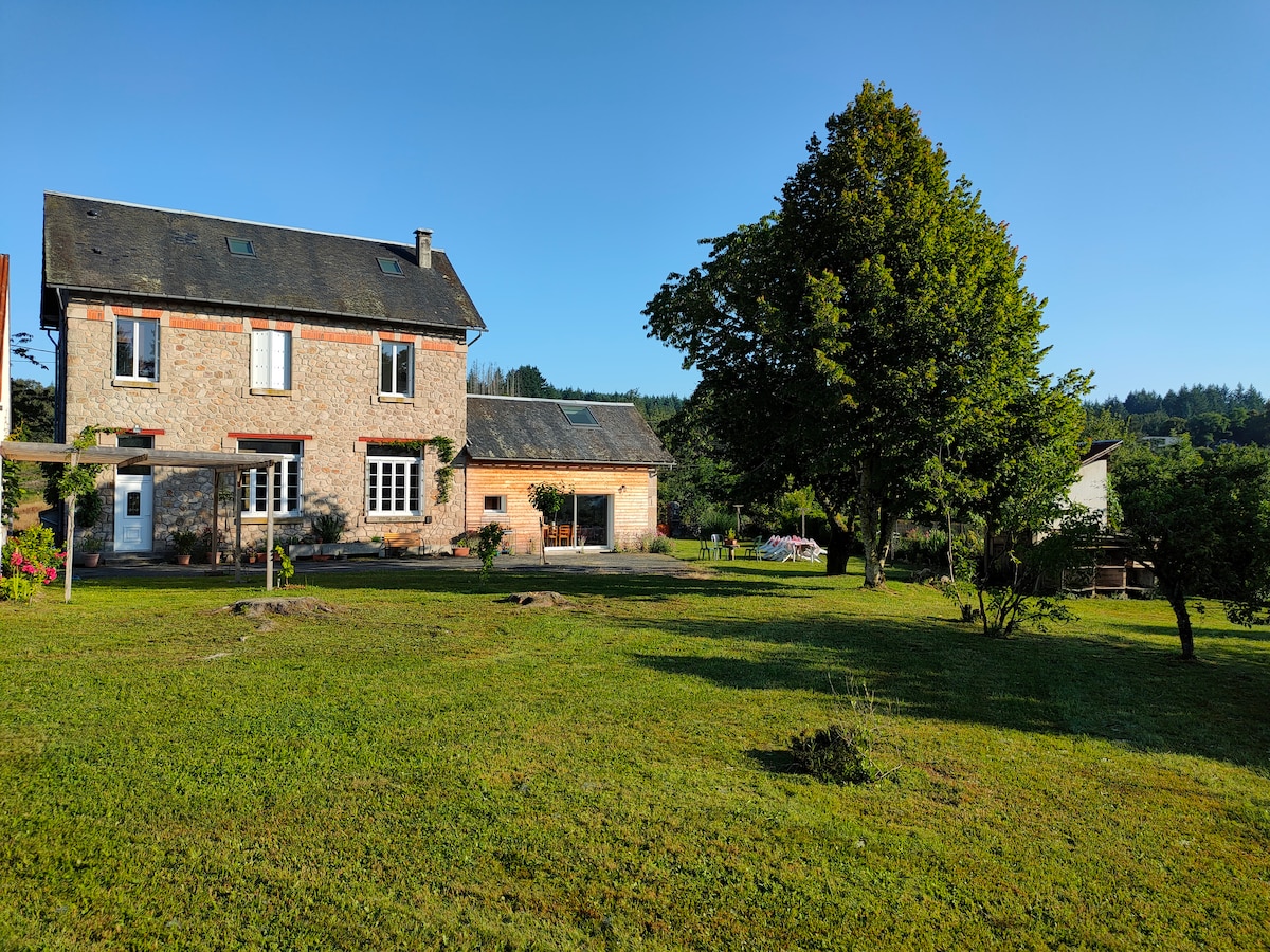 Teach feirme gleoite atá suite i 10 heicteár talún, in áit dhosháraithe ina bhfuil radhairc eisceachtúla, síobann cloigíní an tsráidbhaile trasna an ghleanna. Le taitneamh a bhaint as ag am ar bith den bhliain. Cuardaigh magairlíní san Earrach; laze ag an linn snámha éigríche (roinnte) sa Samhradh; bain sult as feoil rósta agus cnónna capaill sa teallach san Fhómhar nó bí teolaí in aice leis an gcrann Nollag leis an teaghlach sa Gheimhreadh. Níl Saint Robert, ceann de ‘Les Beaux Villages des France ', ach cúpla nóiméad ar shiúl sa charr nó 20 nóiméad siúil.