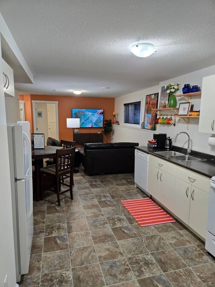 Fáilte chuig do theach sealadach ar shiúl ón mbaile. Tá an t - aonad seo i dteach nua a tógadh i gcomharsanacht stairiúil Sutherland Saskatoon. Níl tú ach nóiméad ar shiúl ó shaoráidí agus gach a bhfuil ar fáil i Saskatoon álainn, lena n - áirítear Ollscoil Saskatchewan, Ospidéal Ollscoile Ríoga agus Ospidéal na Leanaí, siopadóireacht, bialanna agus cosáin abhann. Bí cinnte, mar gheall ar an gcoróinvíreas, go bhfuilimid ag tabhairt aire bhreise chun dromchlaí a dteagmhaítear leo go minic a dhíghalrú idir áirithintí.