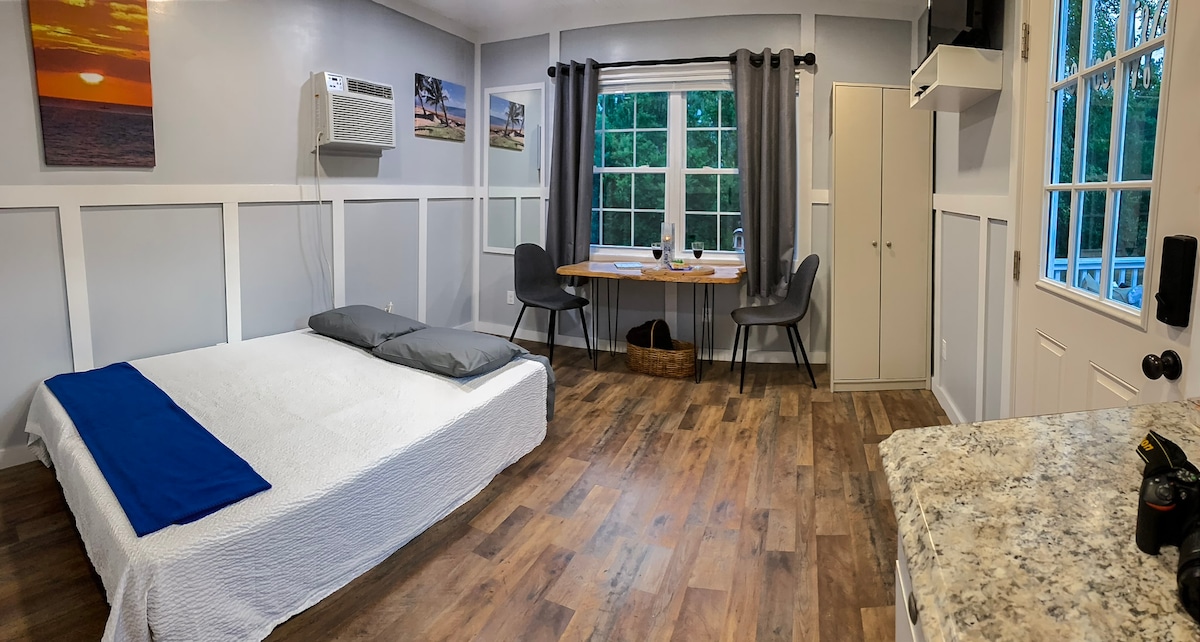 Tá an Cábán ag The Old Parrott Place oiriúnach do dhuine nó beirt le fanacht thar oíche nó ar feadh seachtaine. Tá sé tuathúil, ach glan agus compordach, tá leaba rí, tobán claw - foot, cithfholcadán lasmuigh, micreathonnán, tóstaer, cuisneoir beag agus caife agus tae comhlántach ann. Tugann cathaoireacha rócaireachta ar an bpóirse deis duit beagán ama a chaitheamh amuigh faoin aer ag baint sult as an aer tuaithe nó ag éisteacht leis na héin. *Tabhair faoi deara * Níl aon WI - FI ANN.