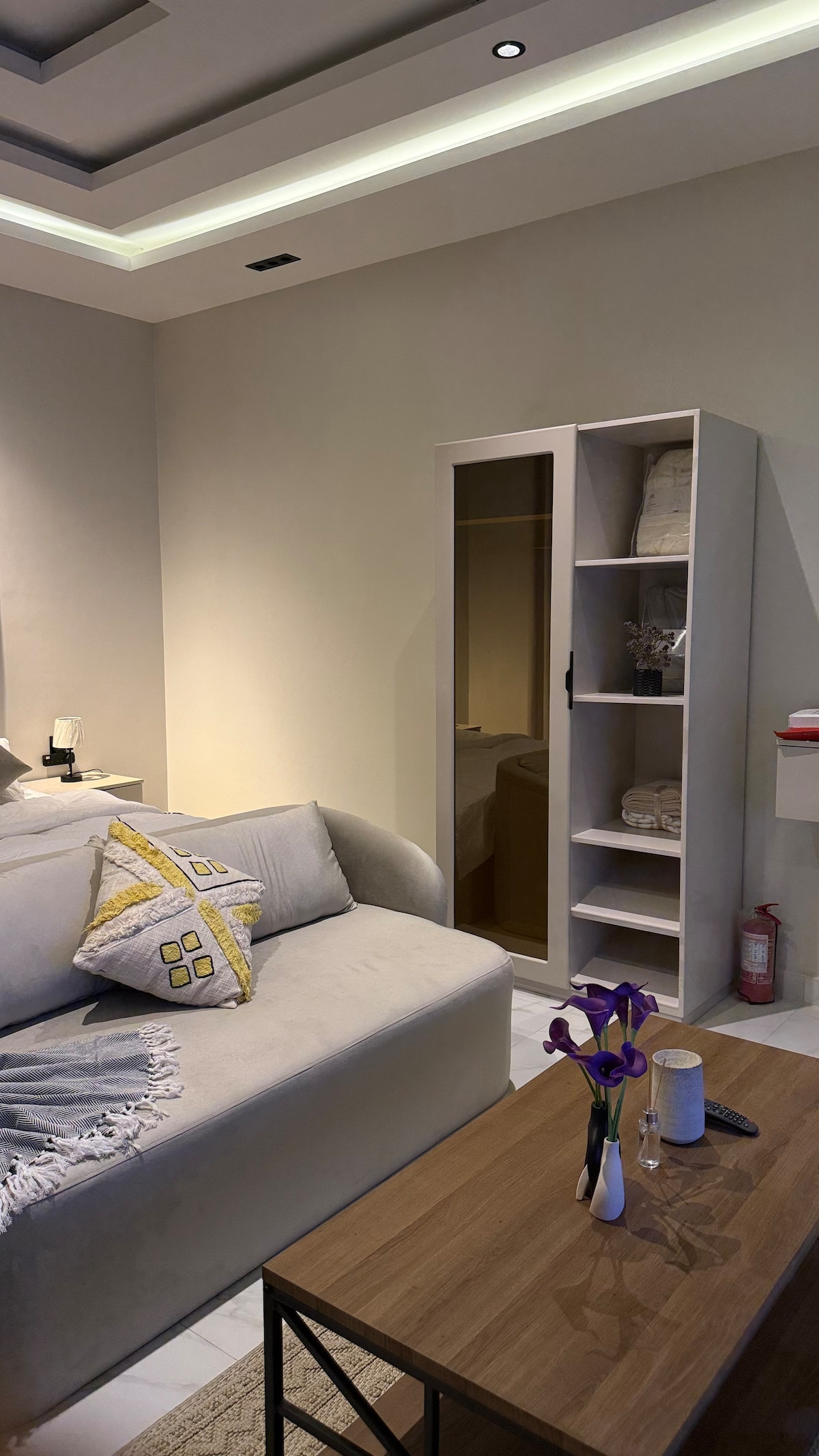 Stiúideo Príobháideach Stiúideo galánta, compordach agus sómasach atá suite i gcroílár Riyadh i gceantar Al - Aqeeq, 15 nóiméad ó ghníomhaíochtaí uile Riyadh. Tá na saoráidí go léir ann le haghaidh fanacht taitneamhach sona. Mar áis duit tá meaisín níocháin Triomadóir Éadaigh Is mise Sarah, tá áthas orm freastal ort.
