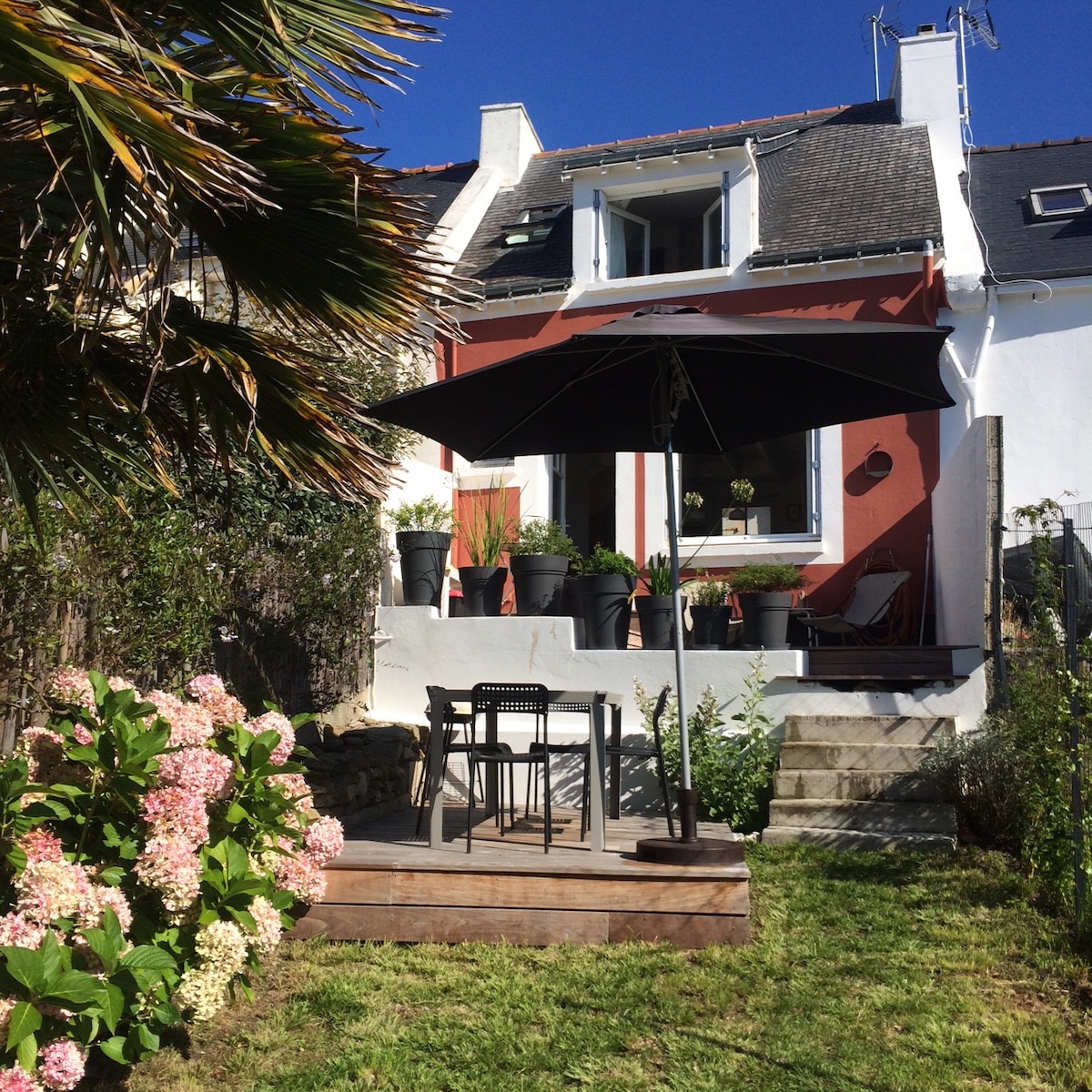 Tá ár dteach beag i gcroílár sráidbhaile atá ina chónaí in Belle Ile, a bhuíochas dá ionad eachaíochta. Suite 200 méadar ó thrá álainn agus ó chuaráin fhiáine, is féidir dul ag fánaíocht ar chosáin an chósta ón teach. Compordach, idir thuathúil agus nua - aimseartha, tá sé te, beidh tú ar do shuaimhneas ann. Is cuid lárnach den teach é an t - ardán, atá os comhair an deiscirt. Tá an troscán déanta ag Axel, le hadhmad Belle Ile.