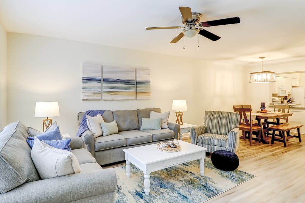 Hilton Head offers the perfect coastal escape! Elevate your retreat with this beautifully decorated 2-bed, 2.5-bath villa, just steps from the wide, sandy shoreline. This vacation rental serves as the perfect home base for exploring the island's 60 miles of pathways, great for bicyclists, more than 20 golf courses, along with attractions like Harbour Town Lighthouse and Coligny Plaza. When you're in need of relaxation, lounge by the resort pool or get lost in a book on the balcony