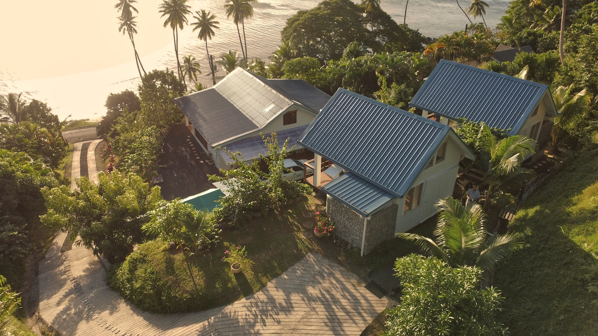 Dhá villa tí beag bídeach galánta nuathógtha le bua measctha coilíneach agus Meánmhara ach méadar ar shiúl ón trá snámha is fearr in Savusavu. Radharcanna iontacha thar bhá Savusavu agus thar fharraige Koro leis an láithreán cáiliúil snorclála "carraig scoilte" laistigh d'achar snámha. Tá sé sin ar fad suite i gcíréib thaibhseach de bhougainvilleas ildaite. Níl an réadmhaoin seo oiriúnach do dhaoine faoi mhíchumas siúil.