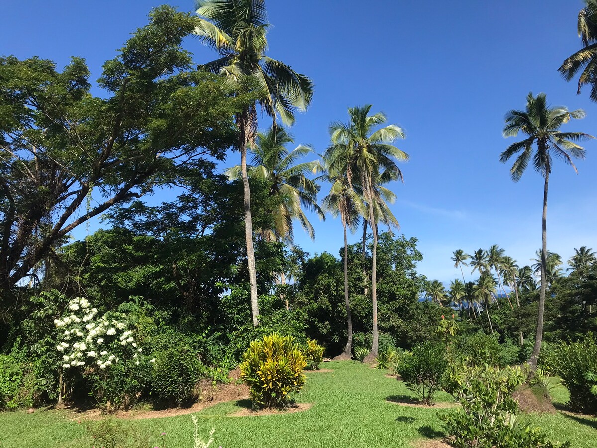 🌴 Fáilte go dtí Comhrá Saor in Aisce The Coconut Retreat – Savusavu, Fidsí 🌺 Éalaigh chuig do theach trópaiceach as baile. Agus é suite leath bealaigh síos Bóthar Nukubalavu, is tearmann síochánta fairsing é The Coconut Retreat atá timpeallaithe ag pailmeacha cnó cócó agus glasra bríomhar — díreach 2 km ó Aerfort Savusavu. Codlaíonn ár dteach plean oscailte 5 sheomra leapa suas le 9 n - aoi go compordach. Cibé acu an bhfuil tú anseo chun athcheangal a dhéanamh leis an teaghlach, chun iniúchadh a dhéanamh ar an oileán, nó chun scíth a ligean, cuireann The Coconut Retreat an spás, an compord agus an suaimhneas ar fáil.