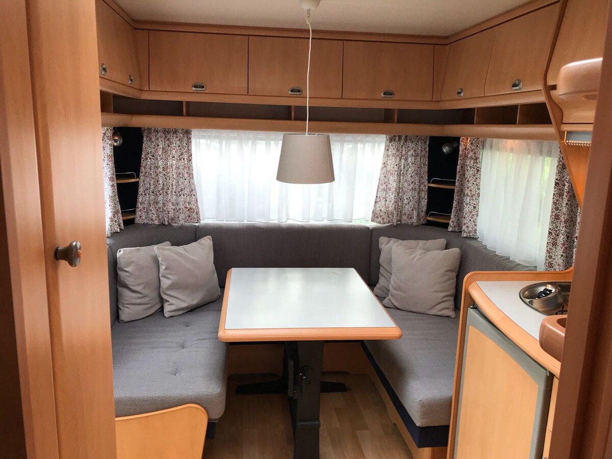 Dia duit, Cuirimid ár gcarbhán ar fáil i láithreáin champála in Leipzig's Neuseenland. Seasann sé de ghnáth ag Hainer See in aice le Kahnsdorf. Mar sin féin, níl áit bhuan againn agus dá bhrí sin ní mór dúinn iarratas a dhéanamh roimh ré má tá do thréimhse ar fáil. Tá fáilte romhat ionad campála eile a roghnú anseo in Leipzig's Neuseenland! M.sh. Strömthaler, Markleeberger nó Kulkwitzer Féach. Is féidir Wildcamping ar Bornaer nó Naunhofer Féach freisin. Beidh ort na táillí ionaid campála a íoc chomh maith le praghas Airbnb.
