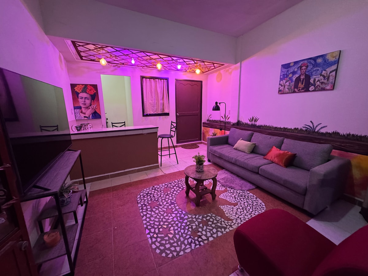 •Acogedor lugar y excelente ubicación a 5 minutos caminando del centro de Acayucan. •Área céntrica, segura y transitada. •El departamento se encuentra amueblado y equipado, 1 recámara con aire acondicionado, cocina y sala. •La entrada se encuentra a pie de calle, ideal para personas con movilidad reducida y/o personas de las tercera edad, no hay que subir escaleras. •estacionamiento techado para 2 carros. •Mascotas pequeñas únicamente. •Por favor leer el reglamento antes de reservar.