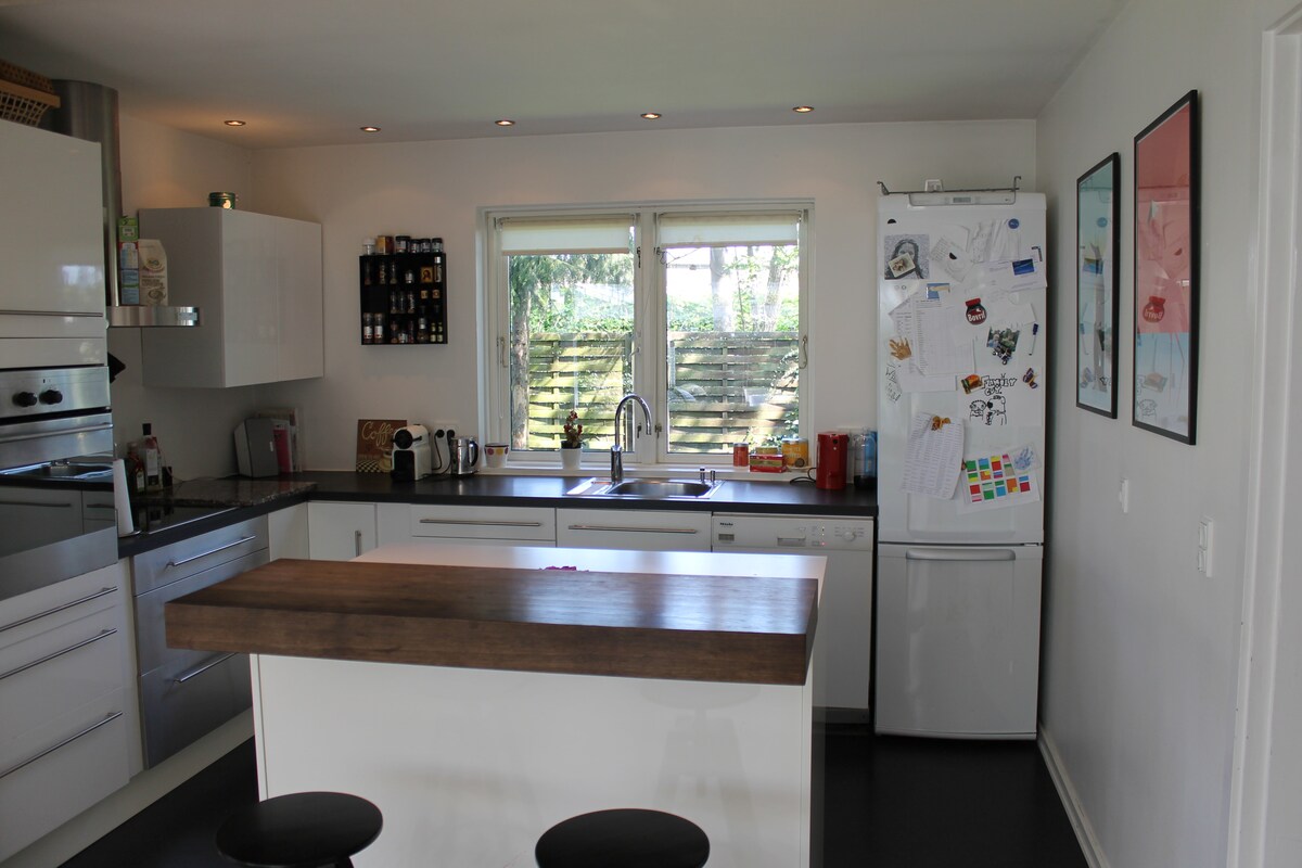 Teach beag nua - aimseartha ar leithinis Nesoddtangen in aice le Oslo. Lonnaithe i gceantar tuaithe, ciúin agus oiriúnach do leanaí ar imeall na foraoise, siúlóid 10 nóiméad chuig an bhfiord agus naisc mhaithe phoiblí leis an mbád farantóireachta go hionad Osló (23 nóiméad). Pointe tosaigh iontach do theaghlaigh aithne a chur ar an Iorua gan strus:)