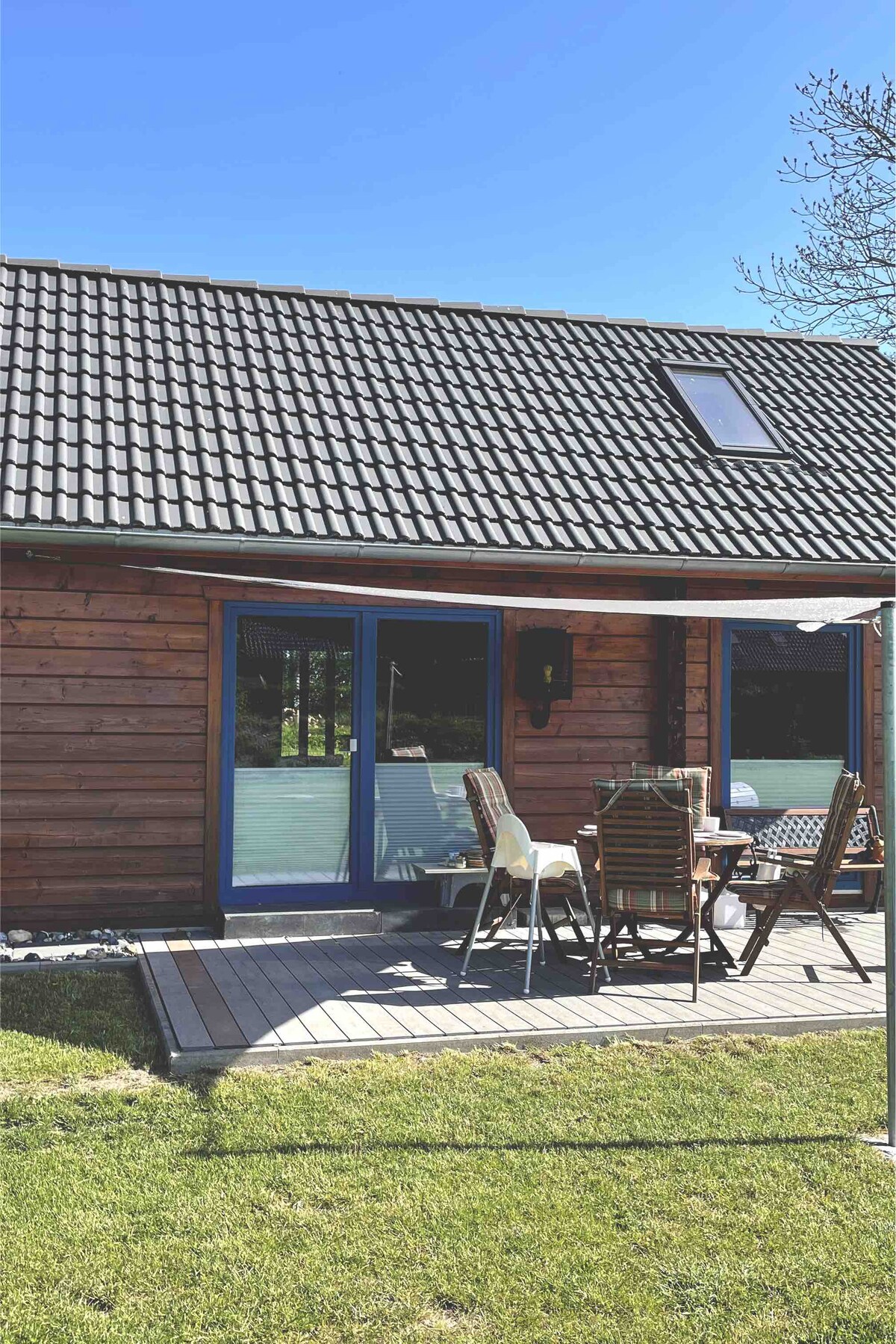 Bain sult as sos teolaí sa bhungaló ar Leithinis Devin. Níl ach 5 nóiméad siúil ón trá ghainmheach agus suite go díreach ag an anaclann dúlra, cuireann sé suaimhneas agus dúlra íontach ar fáil. Tá an bungaló feistithe go grámhar agus tá seomra leapa, cistin samhraidh ar an ardán agus teallach ann. Sa ghairdín tá teallach le haghaidh tráthnónta teolaí. Tá cathair chalafoirt Stralsund agus oileán Rügen inrochtana go héasca. Pointe tosaigh iontach do thaiscéalaíochtaí Mhuir Bhailt.