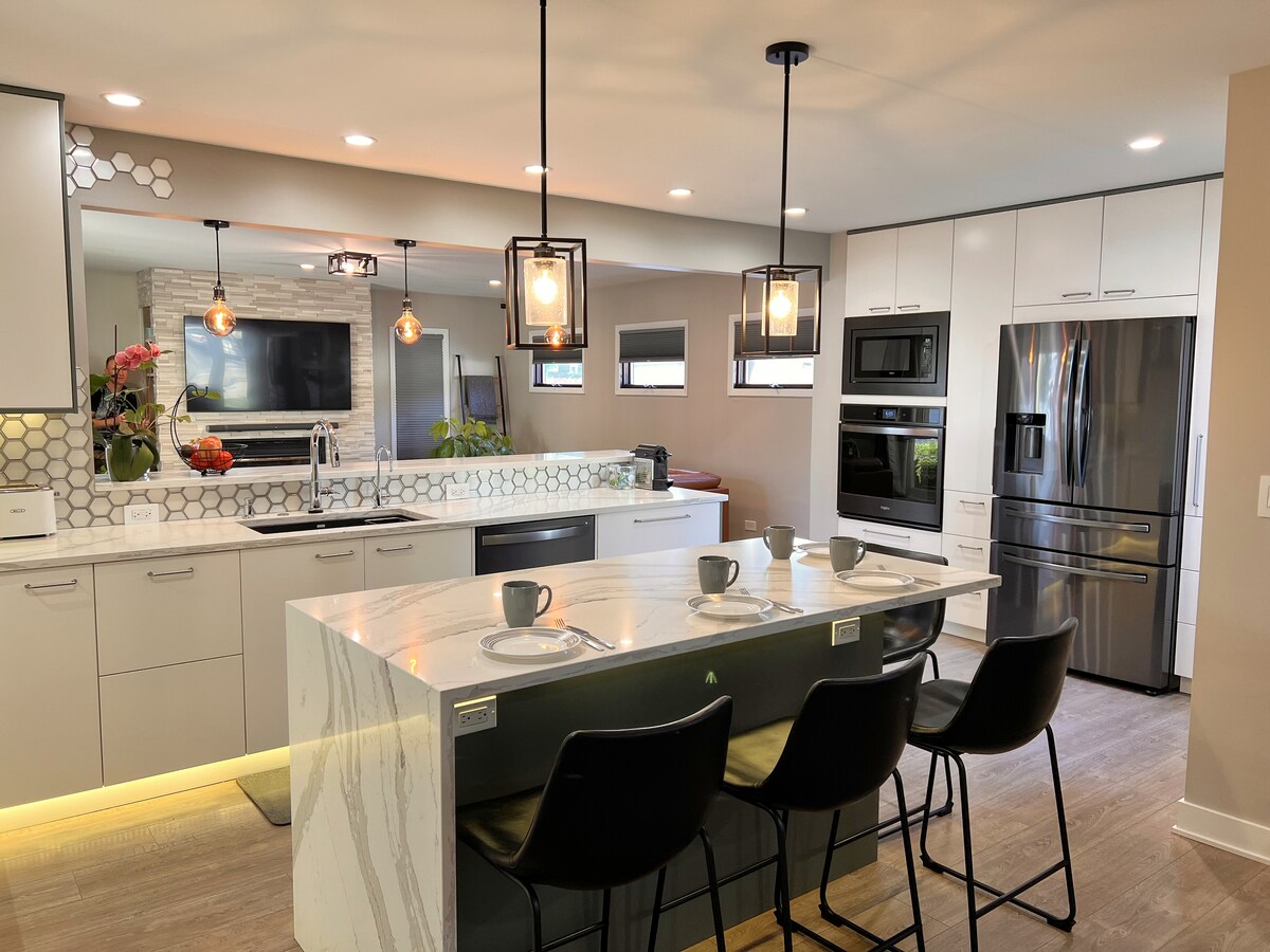 Tá "do theach as baile" ag fanacht le d'fhanacht gearr nó níos faide. Nuashonruithe iomlána, agus feistithe go hiomlán mar áis duit, tá an 3 leaba seo, 2 theach folctha iomlána, le cúlchlós, beárbaiciú agus paitió iontach chun an t - eispéireas is compordaí atá agat maidir le hiniúchadh a dhéanamh ar Schaumburg agus ar na ceantair máguaird. Níl sé suite go háisiúil ach 15 nóiméad ó aerfort O'Hare, 5 nóiméad ó Woodfield mall, 8 nóiméad ó bhaile na Chicago Bears go luath, gach mór - idirstáit, siopadóireacht, bia de chineál amháin agus i bhfad níos mó