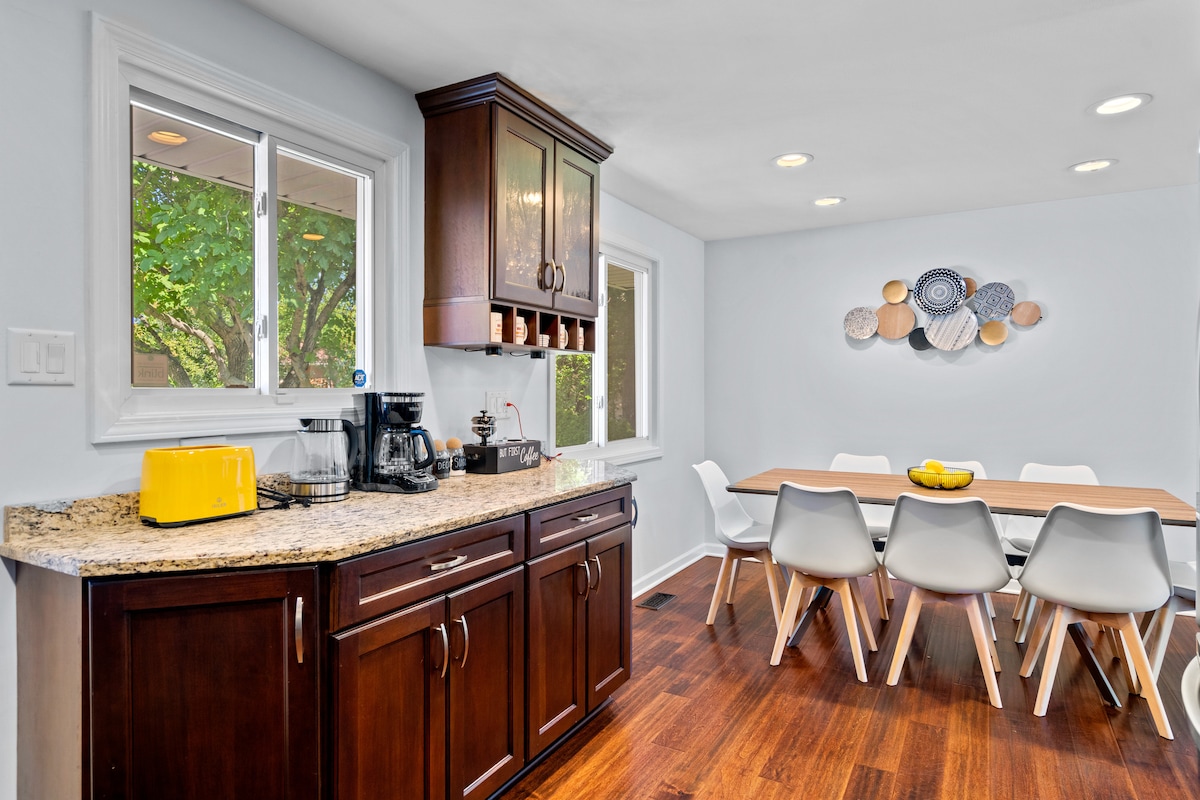 Bíodh spraoi agat leis an teaghlach ar fad ag an áit fhaiseanta seo! - Nóiméid ar shiúl ó Woodfield Mall, Legoland Waterworks Páirc Uisce faoi dhíon, Galf, Amuigh Faoin Aer, agus go leor eile! - Cabhsa Príobháideach - Blazing Fast luas idirlín 1GB - 60 4K Teilifís Chliste w/ Roku Live TV - Pack n Play, Ardchathaoirleach, Stroller - Cistin Stocáilte le Caife agus Waffle Bar! - Limistéar Paitió Lasmuigh w/ cluichí - Limistéar Deisce Oibre. - Firepit, Poll Arbhair, Tábla Linne - Leaba Rí Méid sa Phríomhshráid