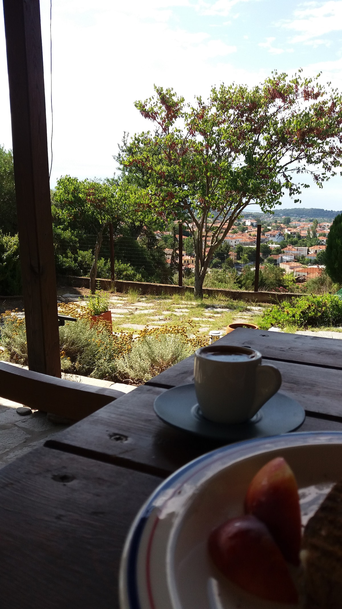 You wake up, the sun is rising behind mount Athos. You enjoy a cup of coffee, while the dolphins jump on the horizon. You walk to the beach and the only thing you can hear is the sea. You cook outside, watching the boats passing by and the seagulls chasing the fish. Now, it's time for drawings and board games. Finally, you have a glass of wine, waiting for the moon to rise behind the hills.