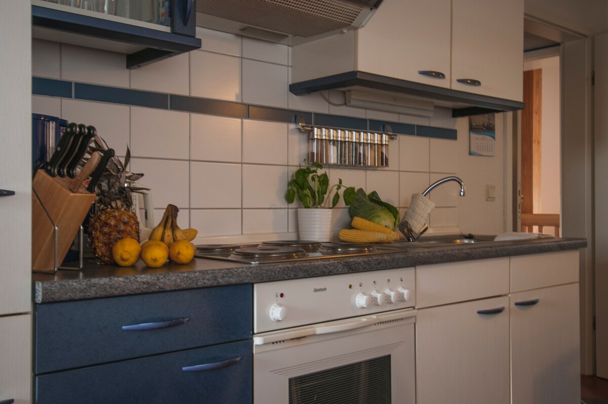 Tá ár dteach díon tuí nádúrtha, os cionn 100 bliain d'aois, suite idir Bremerhaven agus Cuxhaven ag leibhéal na farraige i Láithreán Oidhreachta Domhanda UNESCO An Mhuir Thuaidh in aice le gnáthchuanta gearrthóra portán. Áit an - chiúin chun do scíth a ligean. Rinneadh athchóiriú cruthaitheach agus neamhghnách ar an árasán neamhspleách in 2017 san iar - limistéar cobhsaí. - teallach - Saor ó ghairdín - Folcadán gan chuirtín - Damháin alla indéanta (díon tuí)