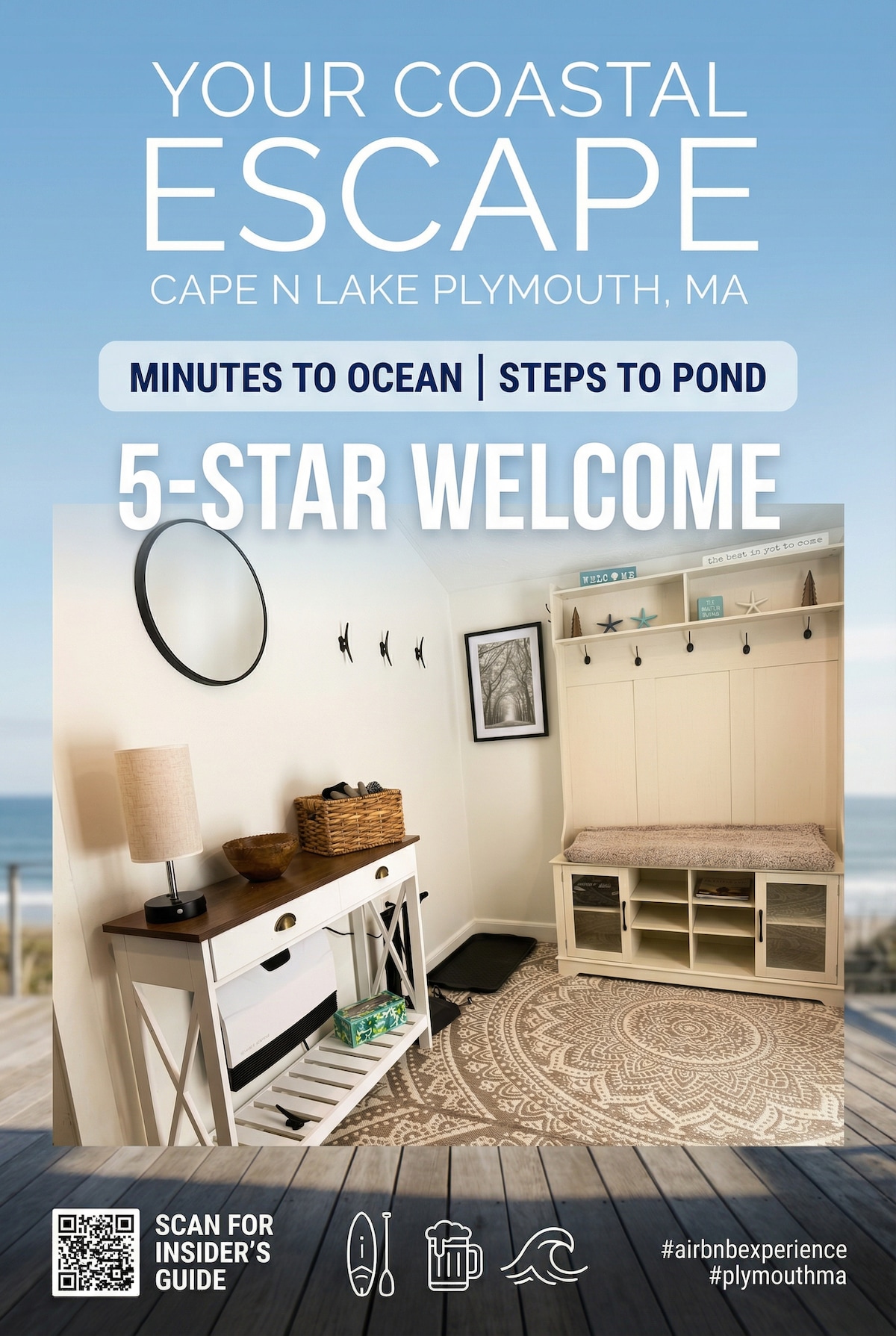 Trasna ón mbealach isteach ar an trá agus céimeanna ar shiúl ó Siopa Ginearálta Sand Hills, tá clúdach álainn timpeall an phóirse sa teach 4 sheomra leapa seo, agus tá na fosuithe go léir ann: gríoscán, suíocháin lasmuigh, cathaoireacha trá, páirceáil agus cadhcanna. Coincheap urláir álainn oscailte le radhairc ar an aigéan, ina gcodladh go compordach 8, tá 1.5 seomra folctha ann, agus meaisín níocháin/triomadóir úrnua. Suíomh - Trá Sand Hills, spaisteoireacht ghearr chuig Teach Solais Scituate, siúlóid thapa chuig Trá an Mhúsaeim agus díreach nóiméad ó na bialanna, na siopaí agus na muiríní sa chuan.