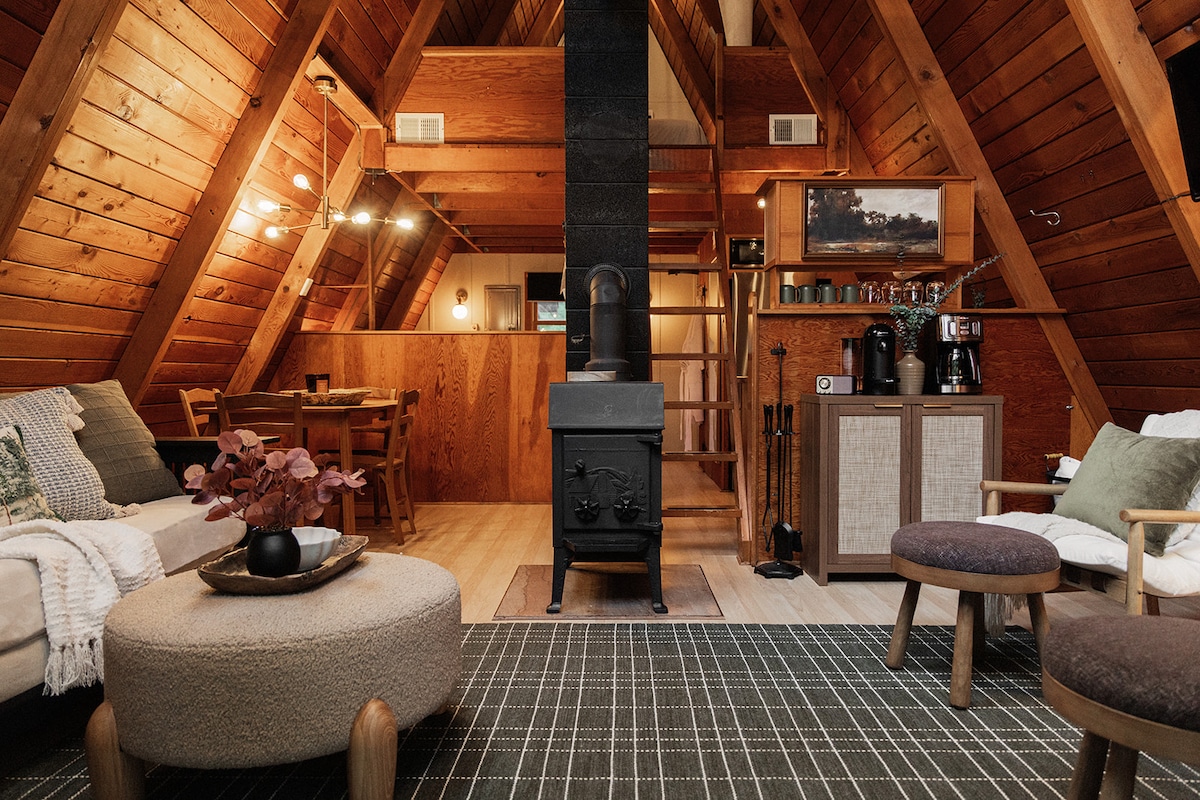 Neadaithe ar Abhainn Betsie in aice le Crystal Mountain, cuireann an A - Frame rómánsúil seo tobán te príobháideach ar fáil faoi spéartha réaltaí, teallach gealgháireach faoi dhíon, agus seomra leapa lochta atá ag breathnú amach ar an abhainn. Sip caife áitiúil ón mbeár espresso, iasc ó bhruach na habhann, nó scíth a ligean cois tine. Deartha do lánúineacha atá fós compordach do theaghlaigh bheaga atá ag lorg saoire shuaimhneach cois abhann. Téann dátaí na deireadh seachtaine go tapa — déan áirithint go luath chun d'fhanacht a chinntiú.