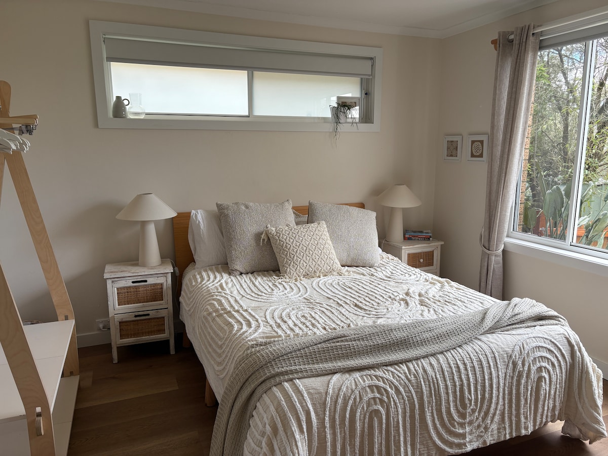 Árasán gairdín féinchuimsitheach éadrom agus aerach 2 sheomra leapa. Tá an t - árasán os comhair an Oirthuaiscirt agus níl sé ach 5 nóiméad tiomána chuig Manly Beach agus Manly Dam coille. Tá sé in áit ardaithe agus tá an fharraige lán lena bhealach isteach féin agus lena dheic phríobháideach mhór agus clós. Tá páirceáil sráide ar fáil i cul de sac ciúin. Leapacha banríona compordacha i seomraí leapa fairsinge, seomra suí/bia ar leith, seomra folctha agus cistinéad le barr cócaireachta ionduchtaithe, agus níochán ar fáil le húsáid ag aíonna.