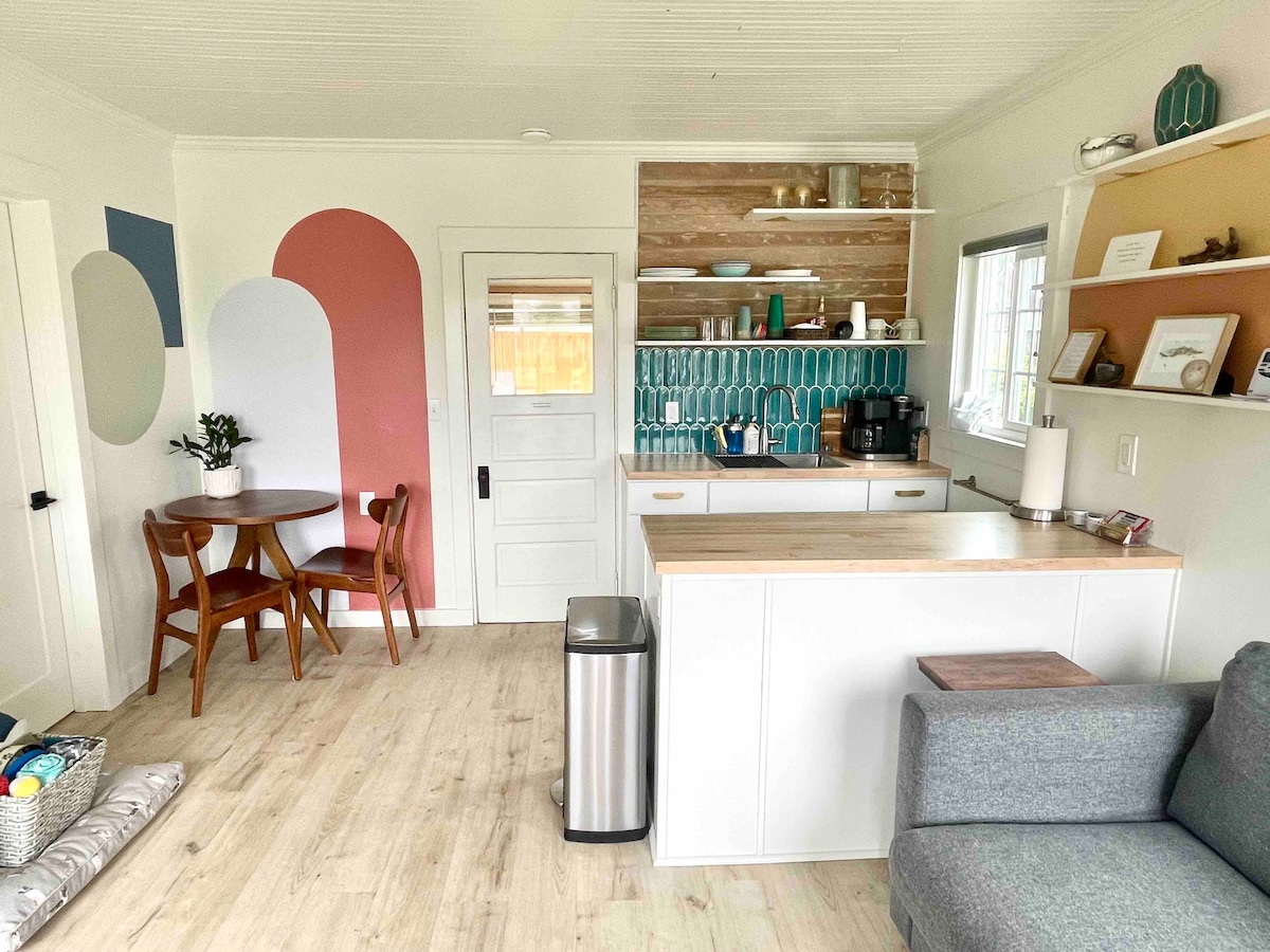 Faigh blaiseadh d'éirí na gréine ar an abhainn agus luí na gréine ar an trá! Rinneadh ár dteach beag bídeach teolaí atá oiriúnach do mhadraí a athchóiriú le déanaí agus bhí sé foirfe do lánúin nó do theaghlach beag. Táimid thart ar 5 bhloc ón trá, 4 bhloc ó Broadway agus díreach trasna ó Abhainn Necanicum. Tar éis lá spraíúil trá, is áit fhoirfe é ár spás 440 troigh chearnach chun do scíth a ligean. Sa seomra leapa bainfidh tú taitneamh as codladh ar ár dtocht banríona só nó b'fhéidir go dtitfidh tú i do chodladh os comhair na tine ar ár dtolg codlata cúr cuimhne banríona.