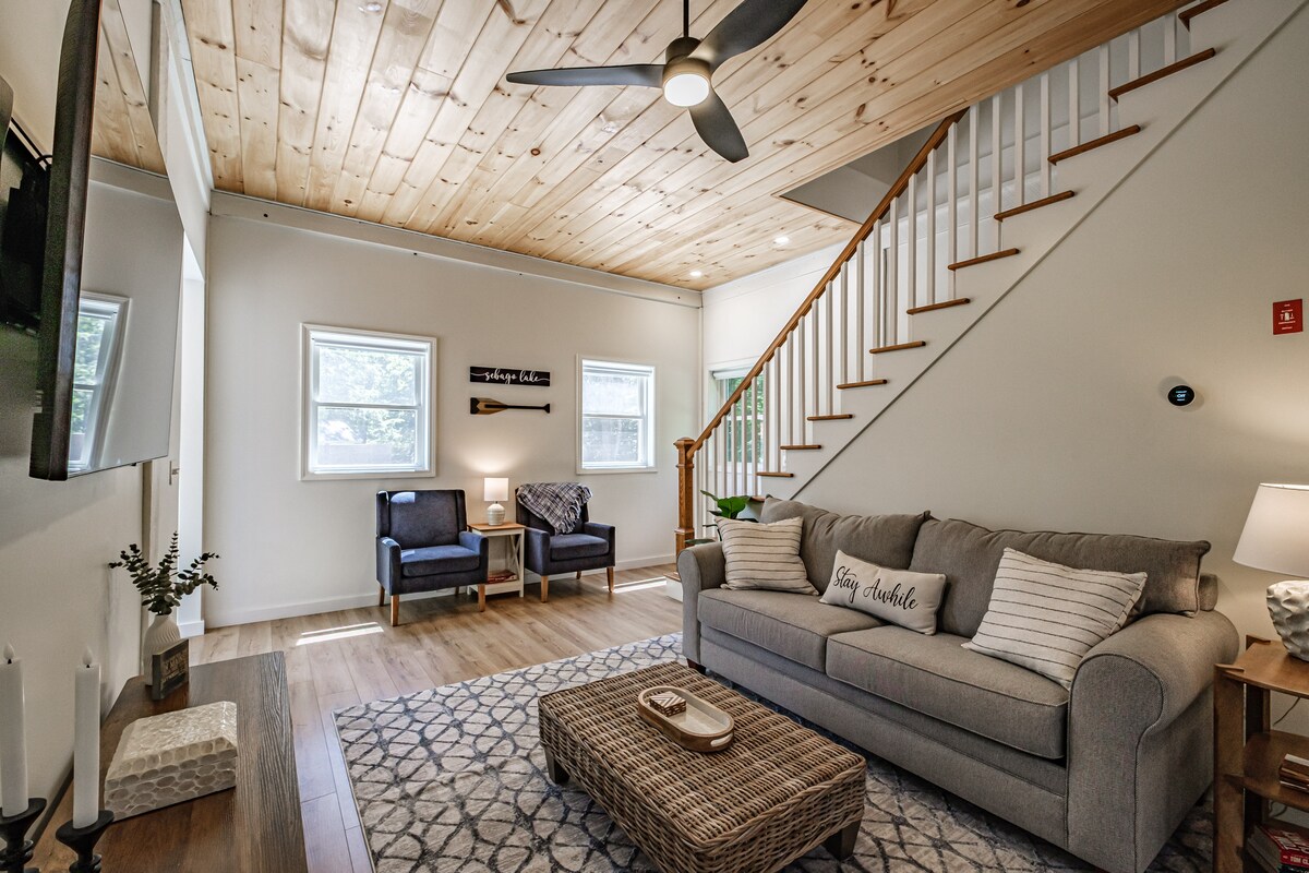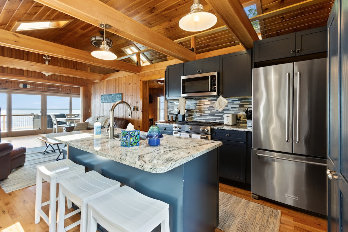 Fáilte chuig Dockside Dreams, do thearmann ó cheann ceann na bliana ar bhruacha Loch Sebago. Is meascán foirfe é an teachín Maine seo atá nuashonraithe go tuisceanach de dhraíocht thuathúil agus d'áisiúlacht nua - aimseartha. Taobh istigh, gheobhaidh tú bailchríocha teo adhmaid, bíomaí nochta, agus leagan amach coincheapa oscailte a chruthaíonn mothú teolaí ach fairsing. Tugann fuinneoga móra agus doirse sleamhnáin solas nádúrtha álainn isteach agus tá siad oscailte do dheic cois locha, ag tairiscint radhairc scuabtha de Loch Sebago le do dhuga féin le haghaidh bádóireachta, snámha agus spraoi cois uisce!