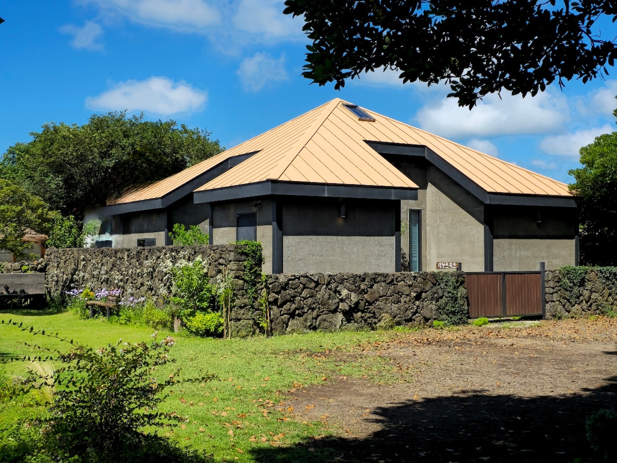 Tógtha i 1866, rinneadh athchóiriú ar an teach cloiche barántúil Jeju seo (stíl Hanok) le gach compord nua - aimseartha. Neadaithe i measc alleys Gimnyeong, atá suite ar rian Olle uimh. 20, gan ach 3 mn tiomáint ó thrá Gimnyeong, is é an áit iontach é chun taitneamh a bhaint as stíl mhaireachtála barántúil an oileáin. Tugann an tearmann leighis seo rochtain eisiach duit ar theach príobháideach (Ankkeori, teach clós), agus tobán te eisiach lasmuigh. Beidh rochtain agat ar ghairdín agus ar chistin ar leith. Páirceáil sráide saor in aisce. Roberta/Youngsoo