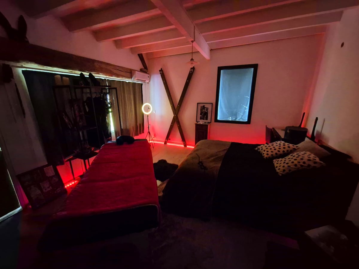 Un lieu secret, entre ombre et lumière, pour une parenthèse à deux hors du temps. Ambiance tamisée, design soigné et atmosphère envoutante pour une expérience empreinte de mystère et résolument unique. Une chambre intimiste décorée avec goût. Jeux de lumière, ambiance chaleureuse et confort haut de gamme pour une escapade à deux placée sous le signe des Jeux Coquinoux entre couples officiels ou non. Possibilité de louer à l'heure.