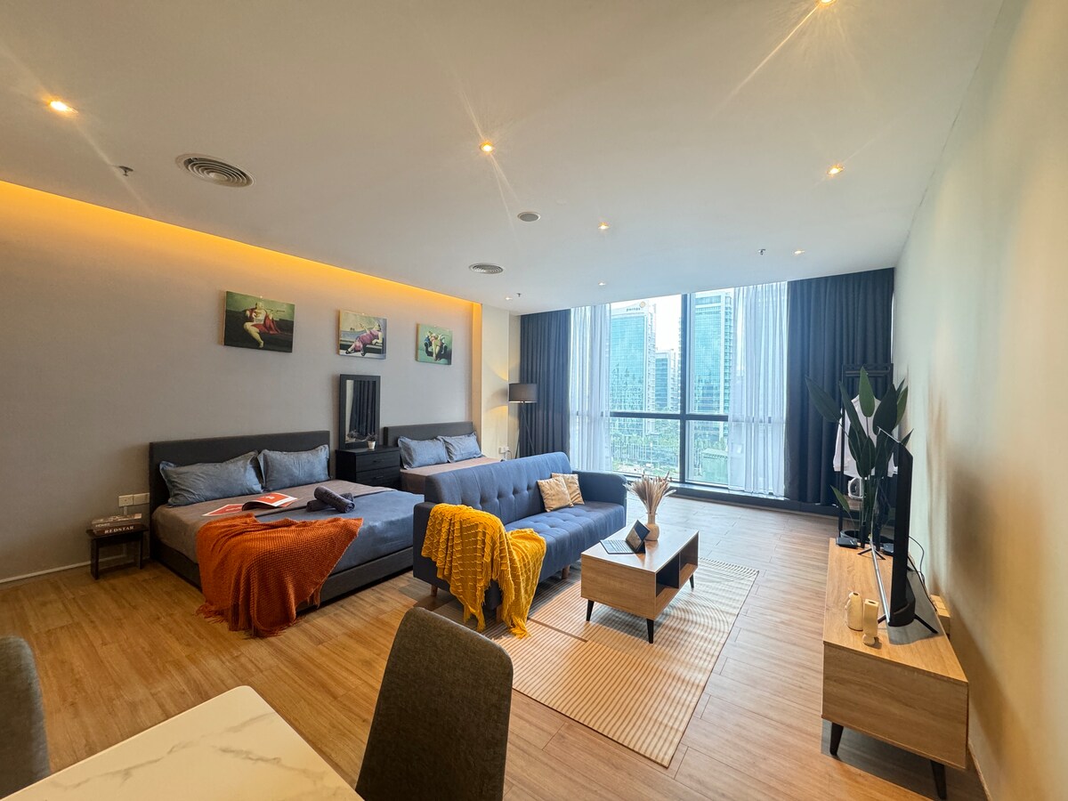 Stiúideo atá feistithe go hiomlán, a oireann do thaistealaithe aonair agus do lánúin. Tá an áit suite in aice le Meall Qulill City os comhair Medah Tuanku Monorial (siúlóid 1 nóiméad) a sholáthraíonn nascacht áisiúil le cuid eile de KL. 3 stad go dtí limistéar siopadóireachta Bukit Bintang le Pavilion agus Lot10 malls. 8 nóiméad siúil go KLCC. An radharc is fearr ón bpól éigríoch ar thúr Petronas, Merdeka 118, An Malartán, Menara KL. Tá an linn snámha suite ar an 35ú urlár. Cuirtear sochair bhreise ar fáil : aistriú aerfoirt, carr ar cíos